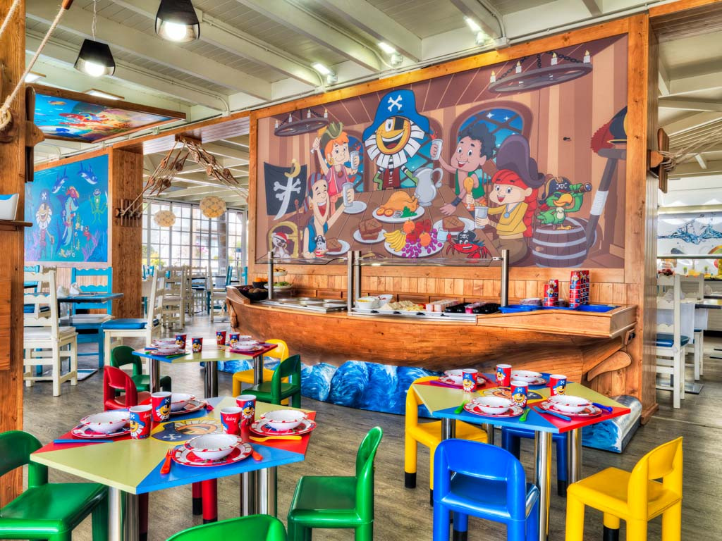 • FAMARA: Az étterem változatos büfét kínál hideg és meleg ételekkel, valamint látványkonyhával, boulangerie-vel és tematikus vacsorákkal. Fedett terasszal és családok számára kialakított területtel rendelkezik, ahol gyermekbüfé reggelit és vacsorát kínál. Különleges menük elérhetősége (kérésre): -Étlapok allergiásoknak és cöliákiásoknak. -Házi gyümölcs- és zöldségpürék gyerekeknek (külön fizetendő, kivéve félpanziós és all inclusive vendégeknek). • POOL BAR PARADISE: Ideális egy harapnivalóhoz vagy egy koktélhoz a medence mellett nappal és este. Emellett 11:30-tól 18:00-ig* kínálják a „HUT FOOD” koncepciót hideg és meleg falatokkal, szendvicsekkel, salátákkal, gyümölccsel és lágy fagylalttal. Az All Inclusive program vendégei számára szolgáltatás, a többi vendég számára pedig à la carte. Esténként élőzene is várja a vendégeket. • RÍO bár Élvezze a kellemes estét zenével és italokkal. Különféle műsorok gyerekeknek és felnőtteknek a Minidisco.