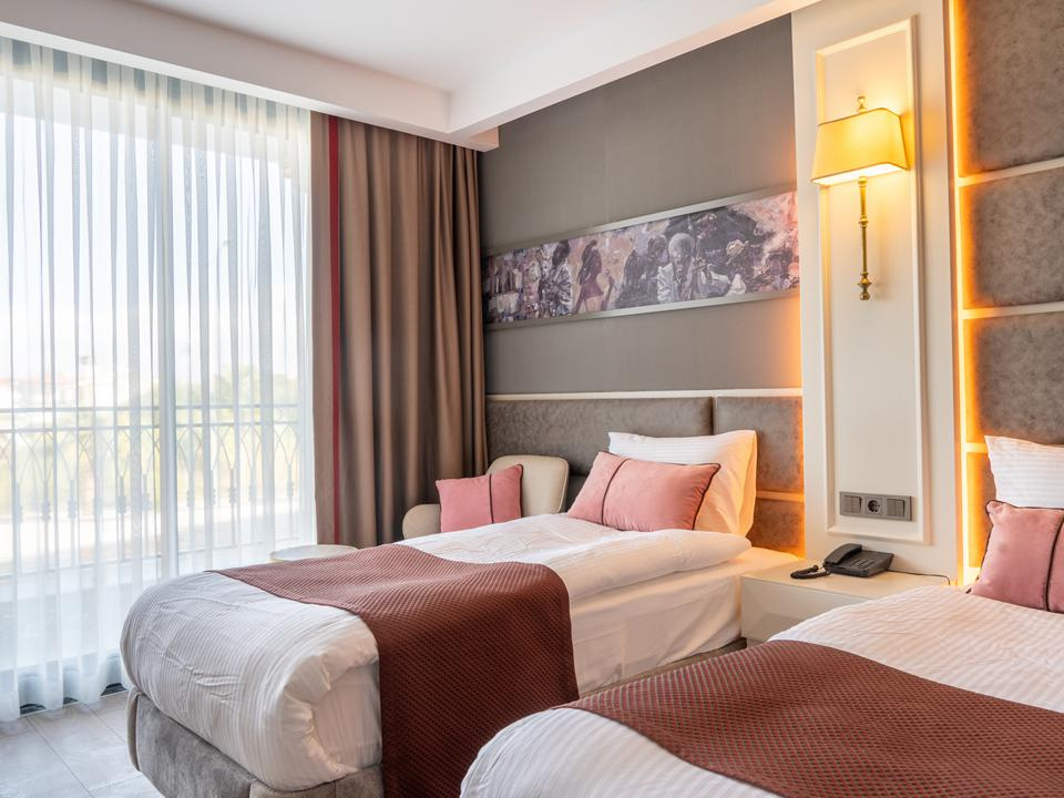 A 2022-ben megnyitott modern, 12.000 nm-en elterülő, 2 épületből álló mindössze 207 szobás szálloda az antalyai repülőtértől 70 km-re, Side központjától kb 10 km-re és a finomhomokos tengerparttól mindössze 500 méterre fekszik, ahova a szálloda shuttle járatot biztosít. Side központjába könnyedén eljuthatunk helyi járatú busszal (dolmussal), hogy megcsodáljuk ókori, 15.000 férőhelyes színházát, a tenger fölé magasodó Apollón templom romjait, vagy csak elmerüljünk a bazári forgatagban.