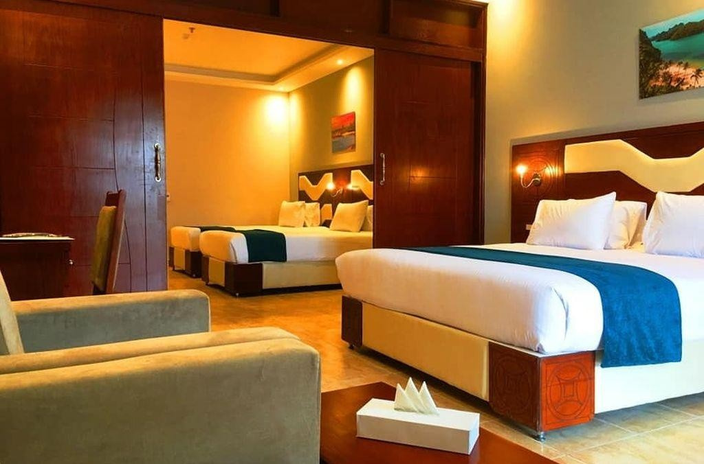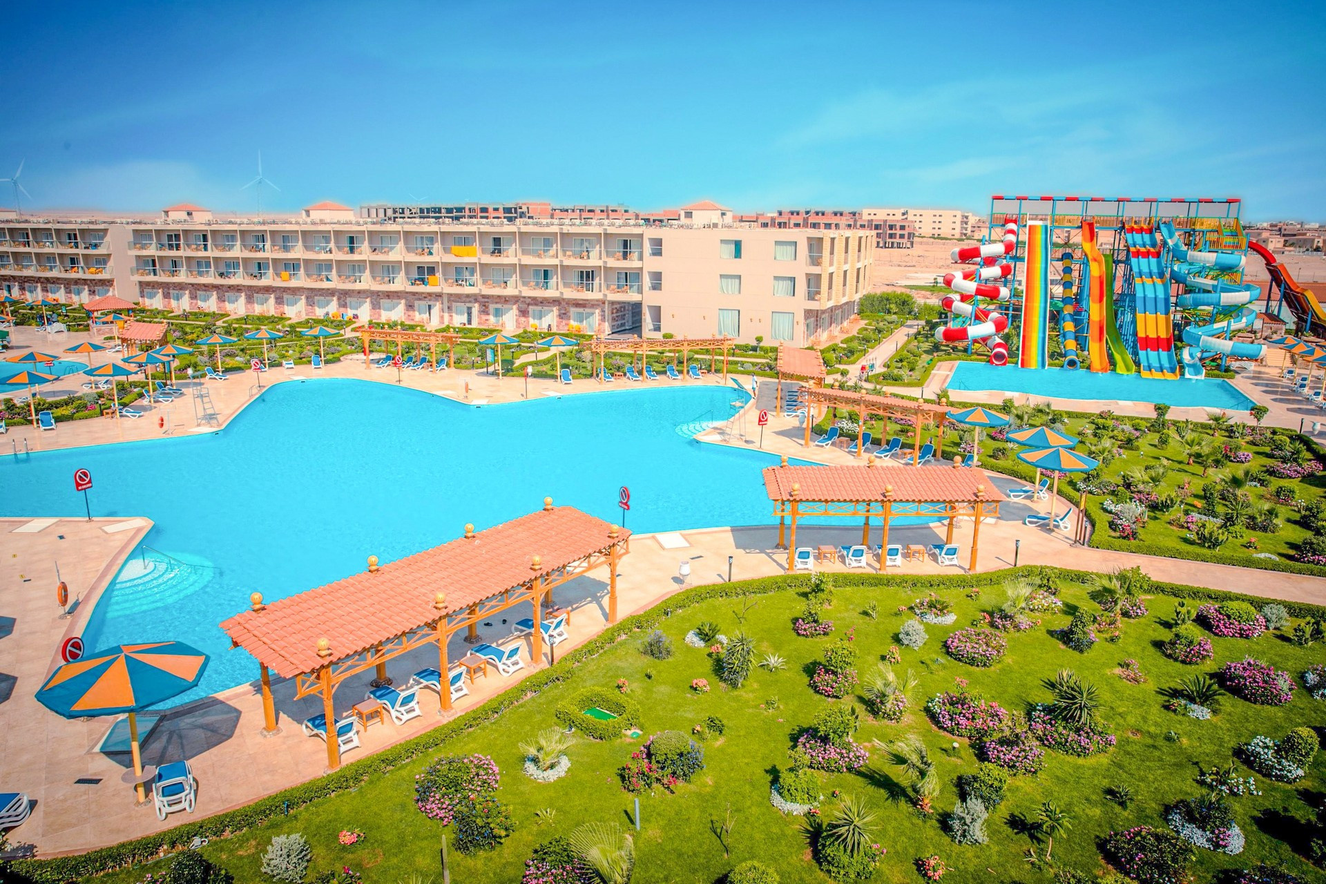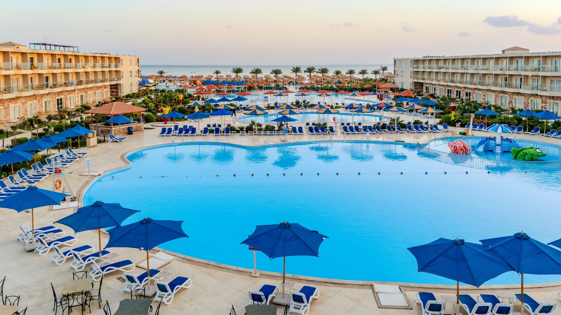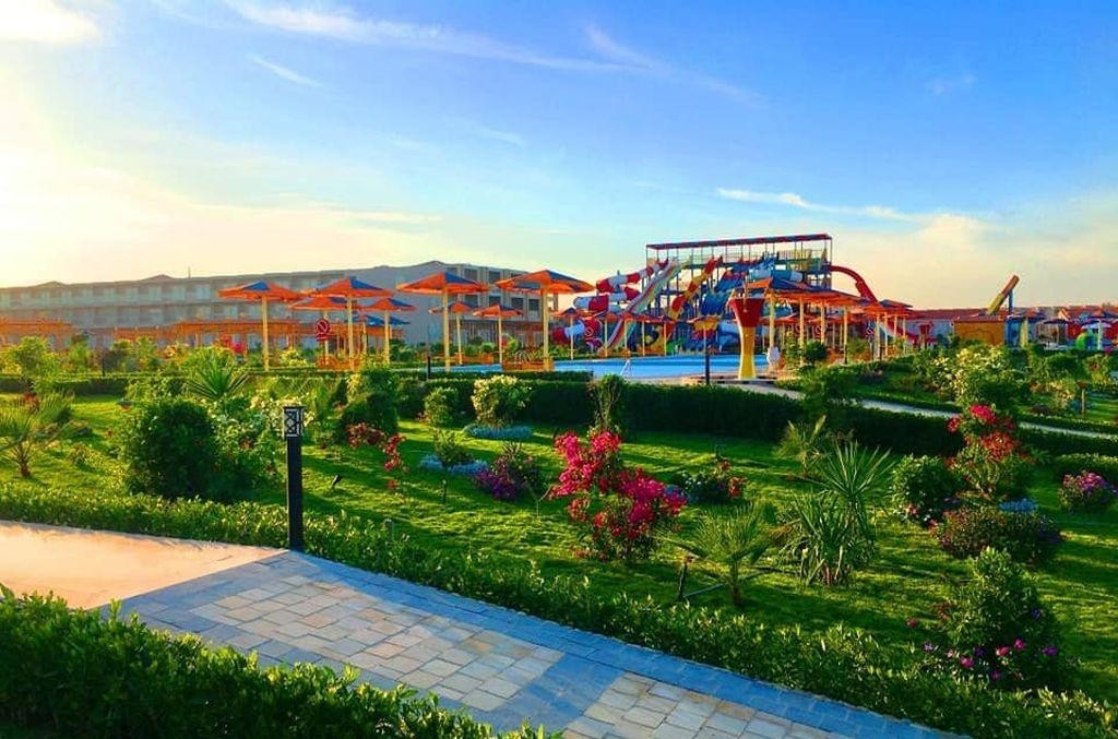 A helyi lakosok körében is kedvelt, közvetlenül a sekély, homokos parton (vízbe lépve kavicsos, fürdőcipő viselet ajánlott) épült szálloda, Hurghadától északra, a központtól kb. 15 km-re, El Gounától kb. 10 km-re fekszik. A hotel kb. 50.000 m2-en terül el és saját aquaparkkal rendelkezik. Minden korosztálynak ajánljuk.