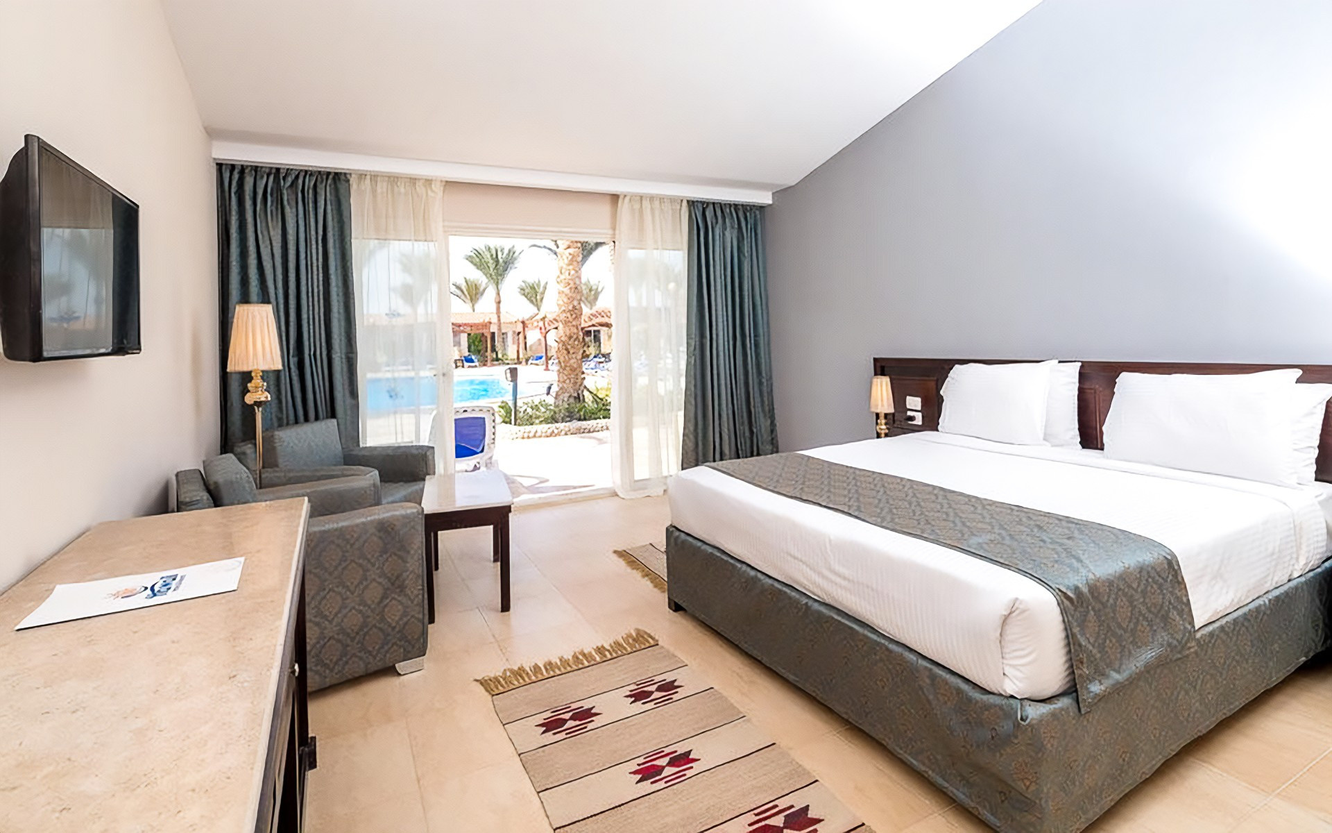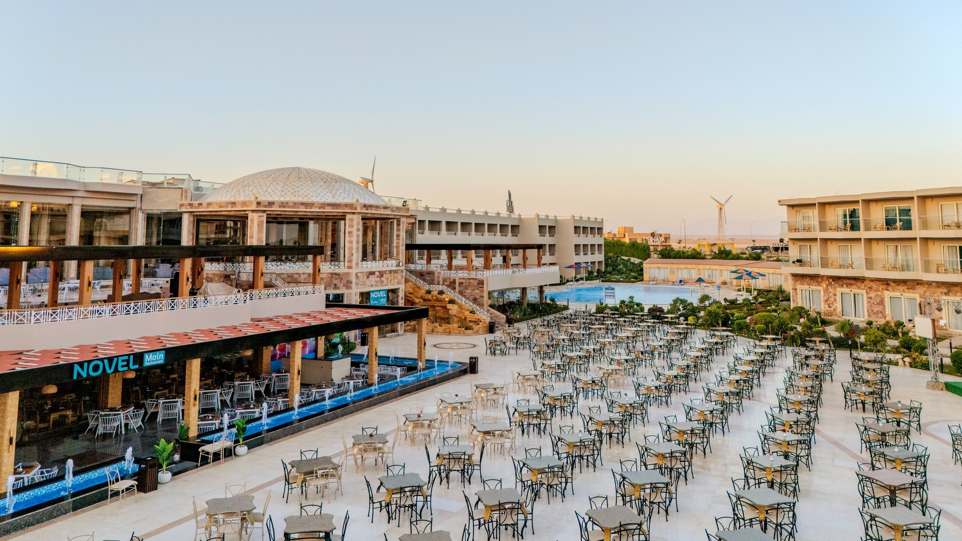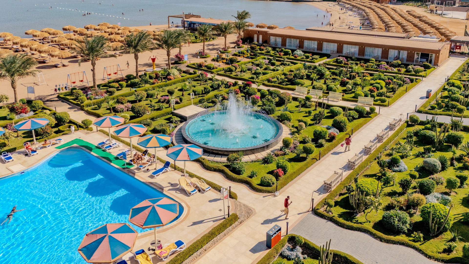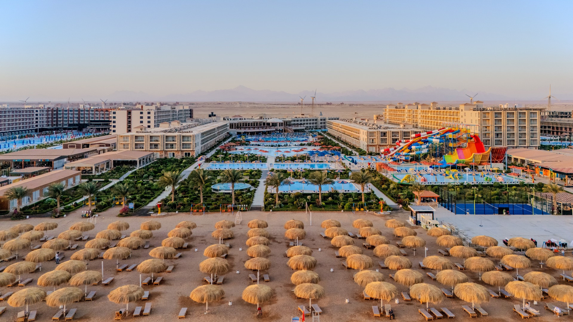 A helyi lakosok körében is kedvelt, közvetlenül a sekély, homokos parton (vízbe lépve kavicsos, fürdőcipő viselet ajánlott) épült szálloda, Hurghadától északra, a központtól kb. 15 km-re, El Gounától kb. 10 km-re fekszik. A hotel kb. 50.000 m2-en terül el és saját aquaparkkal rendelkezik. Minden korosztálynak ajánljuk.
