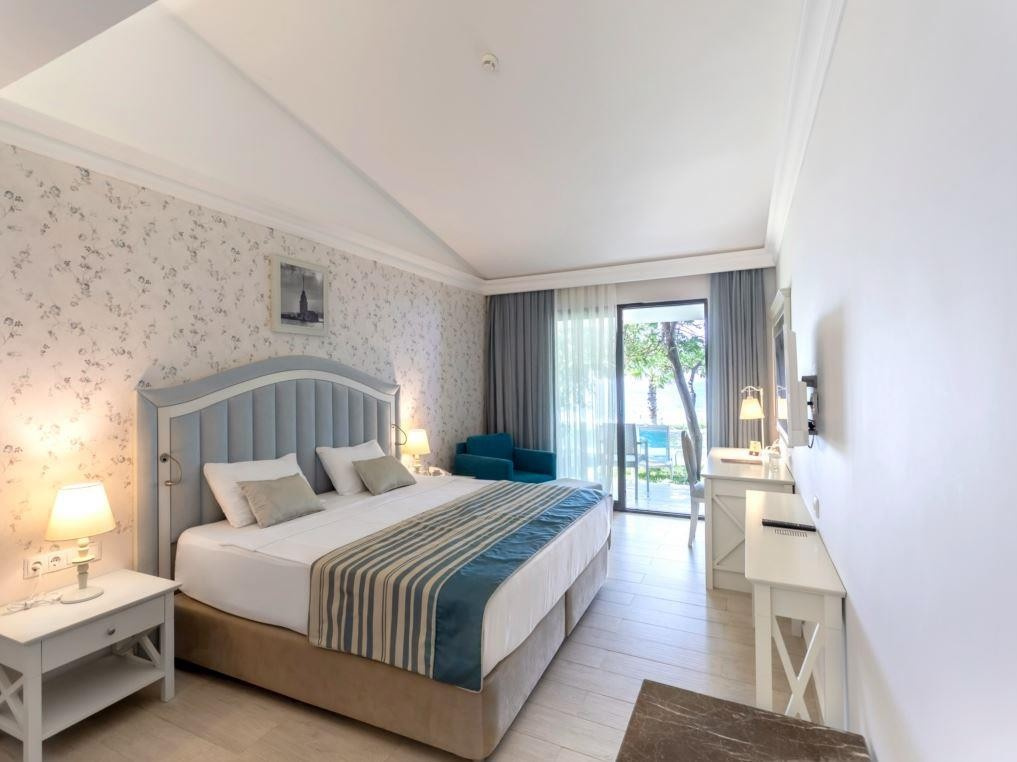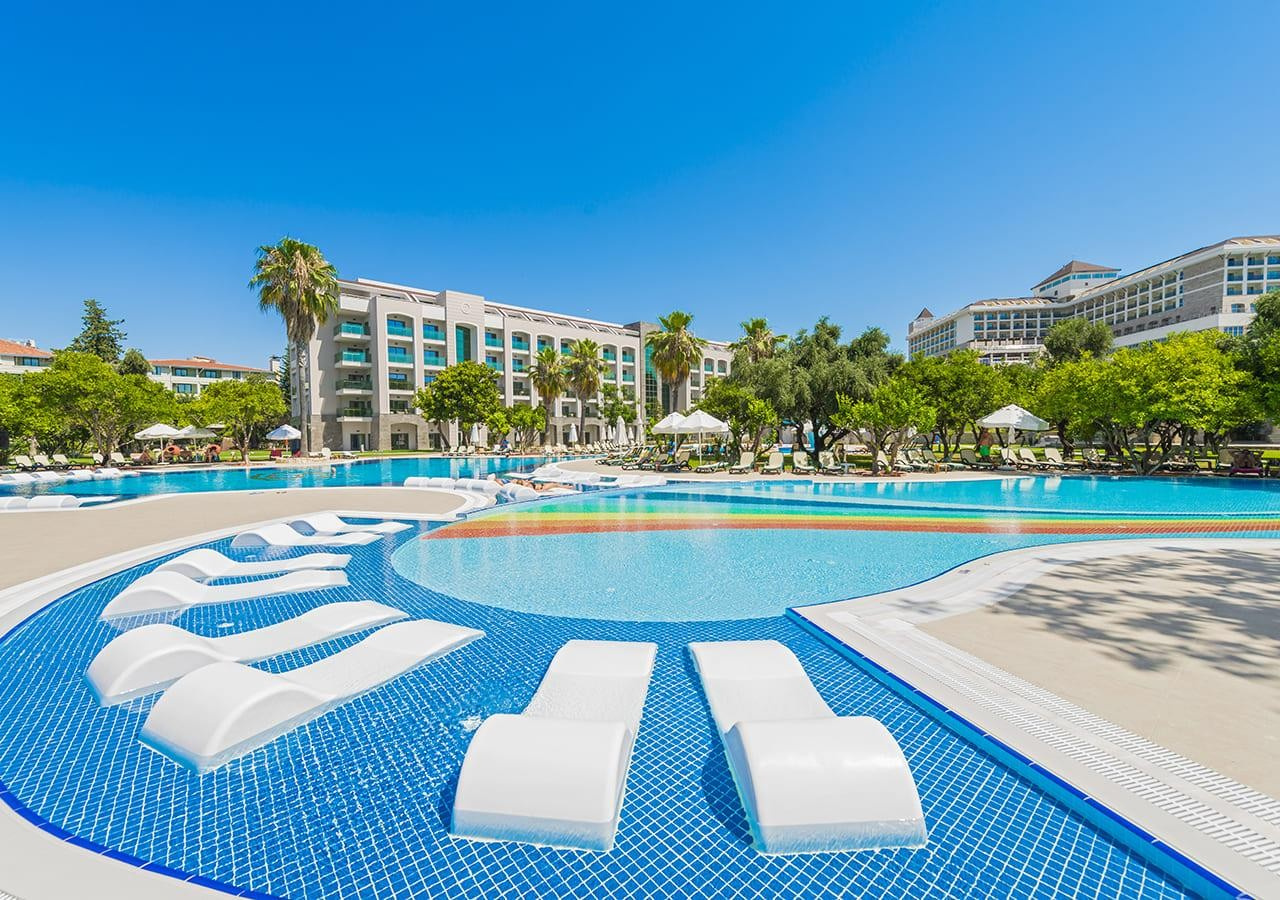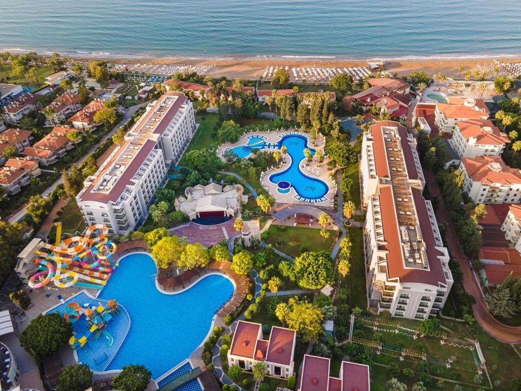 A szépen kialakított, 5 csillagos szálloda közvetlenül a tengerparton fekszik és saját aquaparkkal, valamint Ultra All Inclusive ellátással várja a vendégeket. Side óváros kb. 2 km-re helyezkedik el, amely a parti sétány mentén érhető el. Bevásárlási lehetőségek a közelben. Elsősorban gyermekes családok számára ajánljuk.