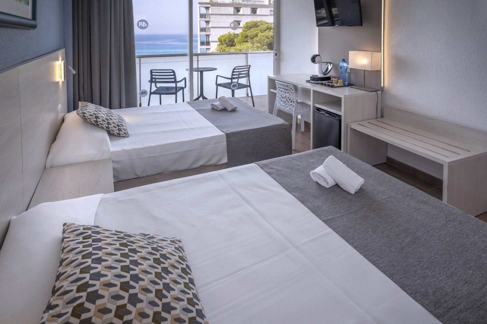 A finomhomokos, 200 méter hosszú, aranyszínű tengerpart (Capellans Beach) pár perces sétával érhető el a szállodától (150 m). Lassan mélyülő víz. Ez a tengerparti szakasz “Kék Zászló” minősítéssel büszkélkedhet, ami annyit jelent, hogy az üzemeltetők különösen odafigyelnek a víztisztaságra, szennyvízkezelésre, biztonsági szolgáltatásokra, szemétszállításra, stb. A tengerparton a napágyak, napernyők térítés ellenében vehetők igénybe. A szállodától 250 m-re egy másik, szintén népszerű “Kék Zászlós” tengerpart található, a Llevant strand. A napágyak, napernyők itt is fizetendőek. Végül, de nem utolsó sorban a szintén 900 méterre található Larga strand is igen népszerű mind a turisták, mind a helyiek körében. Kék Zászló minősítéssel rendelkezik, mint az előző kettő, a strandszervíz térítés ellenében vehető igénybe.