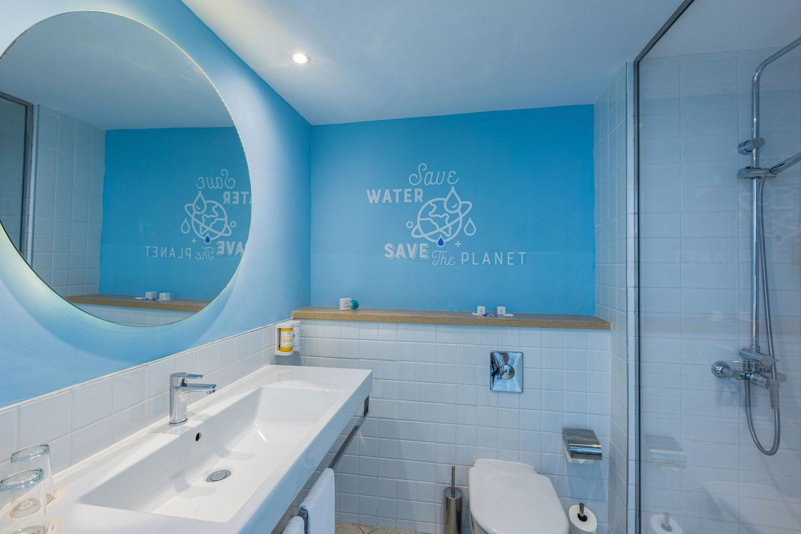 Szoba 2 fő részére 2 személyes (1 pótágy lehetséges – kanapé) Kb. 37 m² 2017-ben felújított légkondicionáló (nyári szezonban), fürdőszoba (zuhanyzó, WC, hajszárító), wifi, műholdas TV, telefon, vezeték nélküli vízforraló, 2 éves korig ingyenes kiságy érkezés előtt, erkély (asztal és székek) kilátás a hegyekre, a medencére vagy az utcára felár ellenében: minibár, széf.