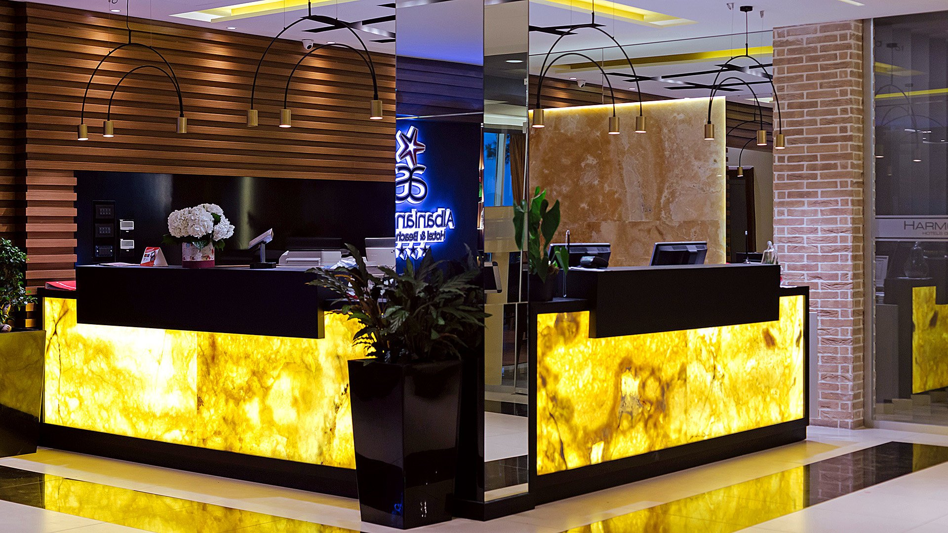 A 4 csillagos, jól karbantartott szálloda egy épületben helyezkedik el, 9 emeletével és 2 lifttel rendelkezik, összesen 130 szobával. A tágas lobby mellett 24 órás recepció szolgálja a vendégeket. A szállodában két étterem található: egy svédasztalos, valamint egy mediterrán és albán a’la carte konyhát kínáló étterem, továbbá bár is rendelkezésre áll. A recepción széf biztosított, és a hotel ingyenes Wi-Fi-t kínál. Ezen kívül 70 fős konferenciaterem, tengerre néző terasz is elérhető. Térítés ellenében orvosi ügyelet vehető igénybe, a szálloda Visa és MasterCard hitelkártyákat fogad el.