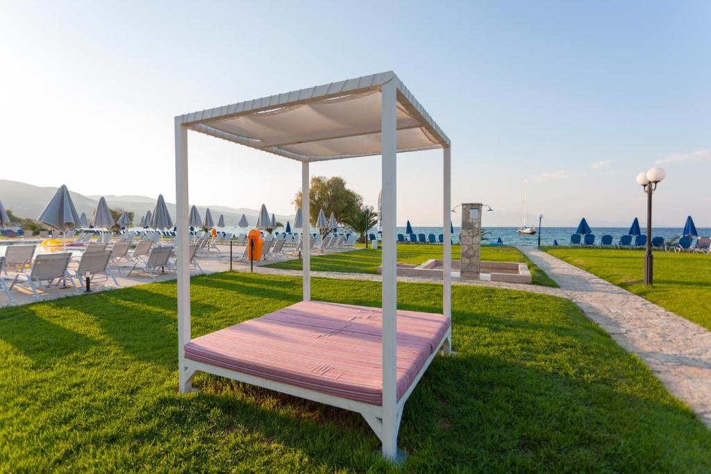 Fekvése: Alykanas település központjától mindössze kb. 200 m-re, közvetlenül a homokos tengerparton (kb. 20 m) épült, 15 épületből álló (lift csak a főépületben), 3 szintes 216 szobás szállodakomplexum. A legközelebbi szupermarket kb. 50 m-re található, a közeli buszmegálló pedig egy kényelmes sétával (kb. 10 perc) elérhető. A település központjában tavernák, bárok, kávézók, üzletek, vendéglők találhatók. Szobáink az épület úgynevezett medencére néző Classic szárnyában helyezkednek el. A komplexum családoknak is ideális választás. Szolgáltatások: Recepció, társalgó, étterem, snack, lobby és pool bár, 4 különálló felnőtt és gyerekmedence (ingyenes napágy/napernyő), gyermek csúszda, játszótér, napozóterasz, ingyenes WIFI (a szobákban is), légkondícionáló, babaágy (külön kérésre), animációs és szórakoztató programok, csomagszoba, parkoló szolgálja a vendégek kényelmét. 2020-ban a mini aqua park már ingyenesen vehető ígénybe. Felár ellenében széf, fitness terem, ajándékbolt helyben igénybe vehető. Elhelyezés: Kényelmesen berendezett kétágyas classic típusú szobában (pótágyazható pótágyazható két gyerek és felnőtt pótággyal), SAT tévé, légkondícionáló, telefon, mini hűtó, hajszárító, zuhany, balkon/terasz. A 2 légteres családi szobák a melléképületben (kisebb méretű medence melletti épületben, ahol az éttermek találhatók) helyezkednek el, és a helységek paraván jellegű ajtóval elválasztottak. Ellátás: FélpanzióEgyéb: