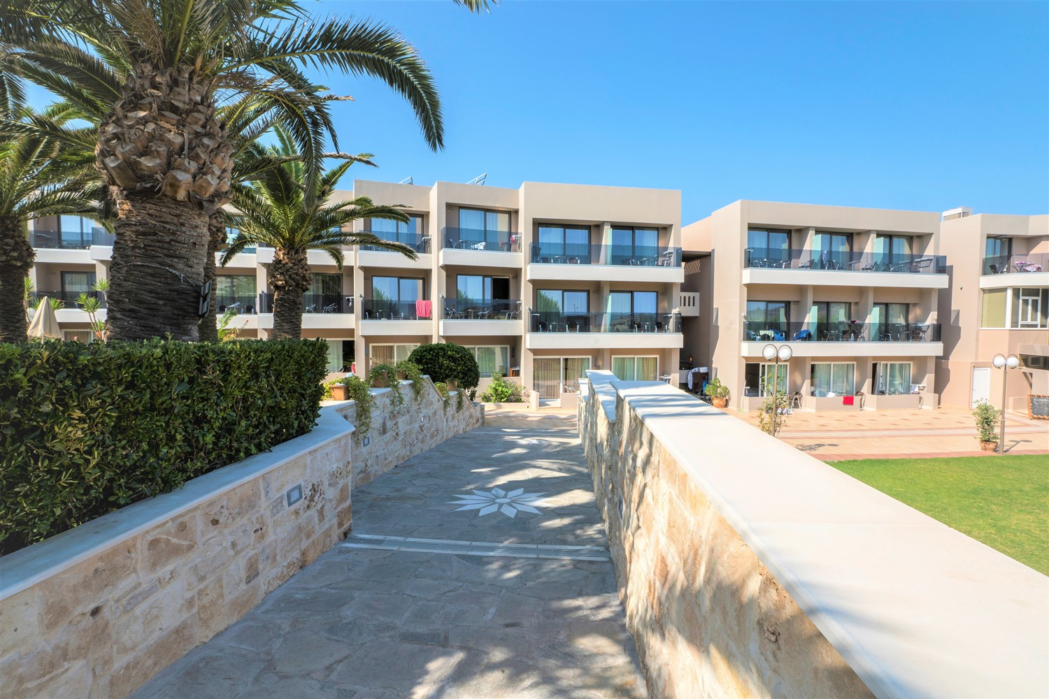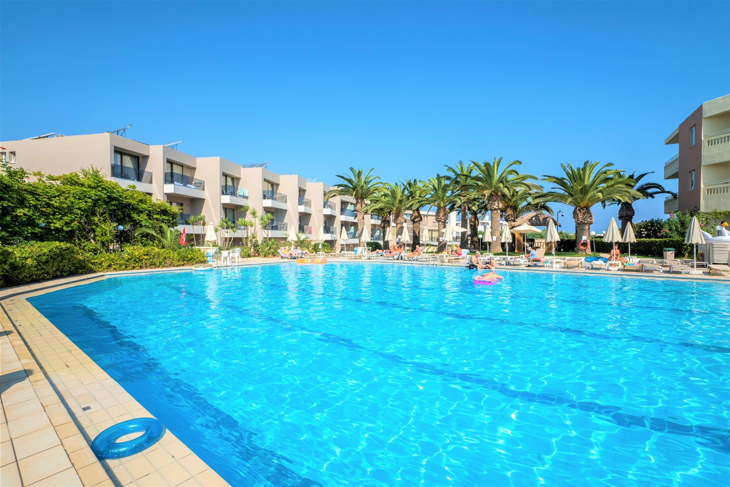 Fekvése: A mozgalmas Ag. Marina településen levő, főépületből és háromszintes épületszárnyakból álló, lifttel rendelkező 130 szobás, 2018-ban felújított modern szállodakomplexum, a homokos tengerparttól mindössze 150 m-re található. Szolgáltatások: 24 órás recepció, a’la carte étterem, mely kitűnő minősítést kapott, lobby bár és medence bár frissítőkkel, snackekkel, nagy méretű édesvizes felnőtt/gyerekmedence körülötte ingyenes napozóágy/napernyő, nagy sebességű WIFI (a közösségi tereken), csomagszoba, gondozott kert mediterrán növényekkel szolgálja a vendégek kényelmét. Aktív pihenésre, szórakozásra aqua zumba, aerobic, szórakoztató műsorok, zenés estek (karaoke, krétai est), játszótér, szolgálnak. Felár ellenében igénybe vehető szolgáltatások közé tartozik: széf (a recepción), babaágy (külön kérésre), internetsarok, masszázs, mosoda. Mozgássérültek részére speciális szoba lekérésére van lehetőség, de a hotel nem teljes körűen akadálymentesített, csak a közösségi terek. Elhelyezés: Modern, kellemesen berendezett, egy légterű, kétágyas pótágyazható superior szobában melyben, légkondicionáló, sat-tévé, telefon, hajszárító, balkon/terasz található. Felár ellenében széf és minibar kérhető. A superior szobák kertre vagy utcára néznek. Ellátás: Félpanzió (büféreggeli és vacsora, gluténmentes ételek előzetes kérés alapján megoldhatók).Egyéb: