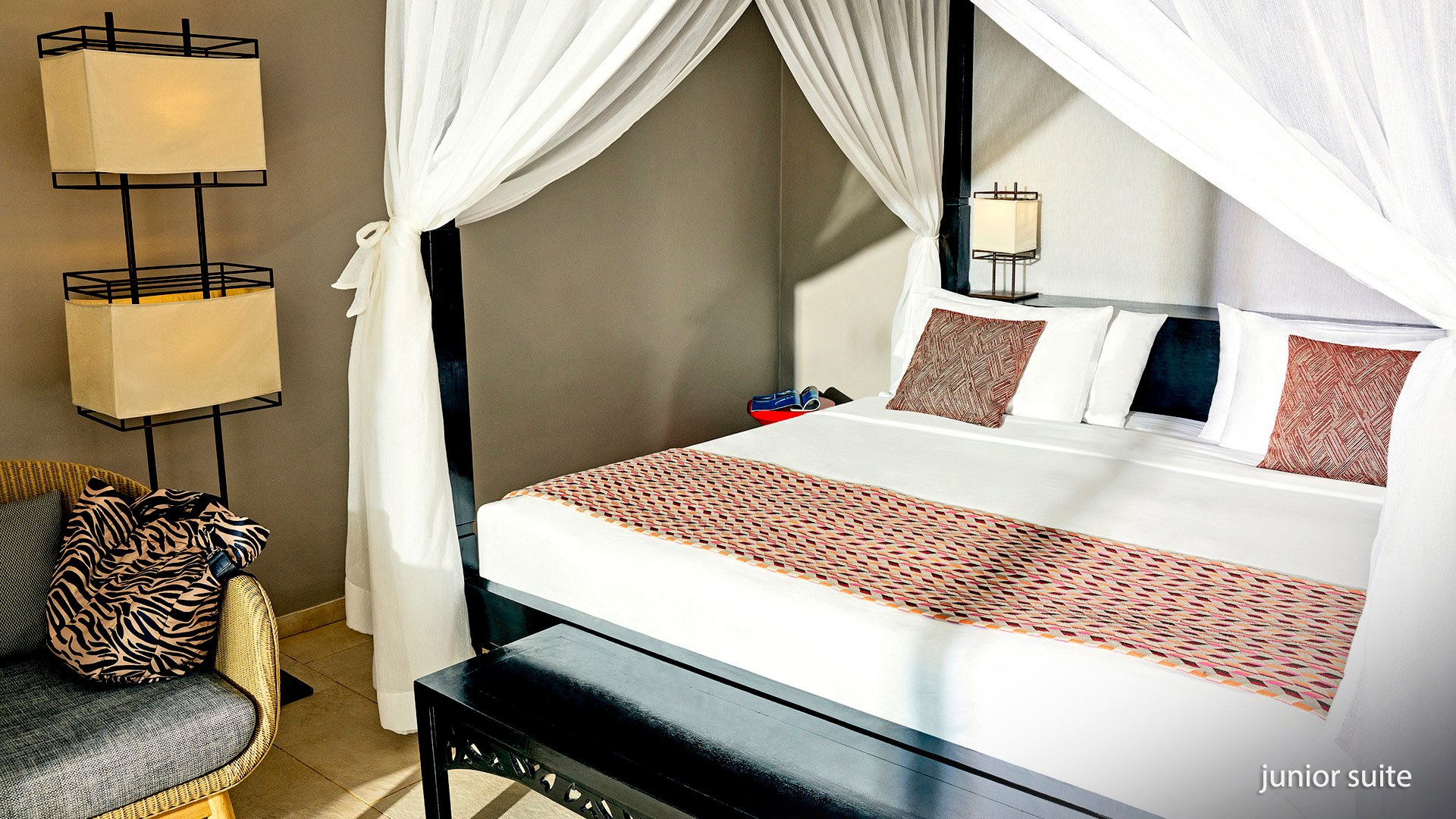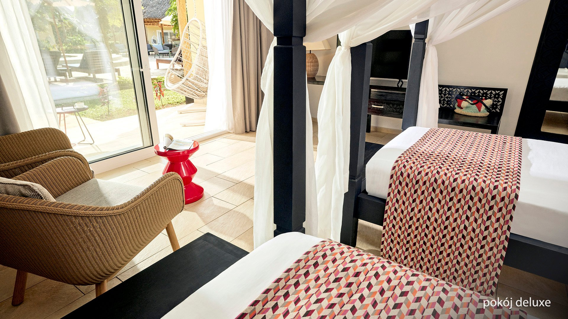 Deluxe: 2 ágyas (1 pótágy lehetséges egy gyermek számára), kb. 35 m², elegáns és modern, egyénileg szabályozható légkondicionáló, ventilátor, fürdőszoba (zuhanyzó; hajszárító), külön WC, szúnyogháló, vezeték nélküli internet, műholdas TV, telefon, tea-/kávéfőző, széf, hűtőszekrény/minibár; ingyenes kiságy 2 év alatti gyermek számára érkezés előtt kérésre; erkély vagy terasz (asztal és székek); Lekérésre Junior suite: 2 ágyas. (1 vagy 2 pótágyazási lehetőség gyermekeknek), kb. 50 m², deluxe szobaként berendezve. Lekérésre Junior suit tengerre néző kilátással szintén.