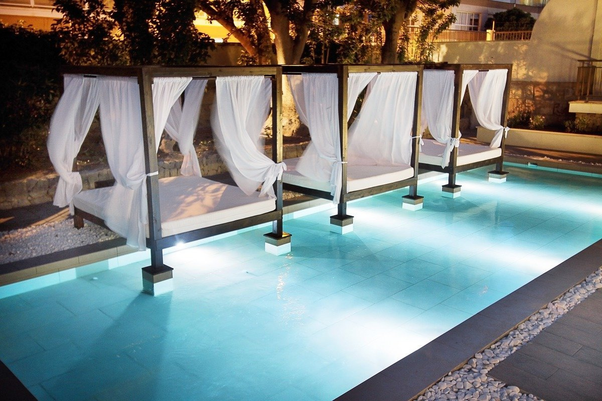 Playa de Palma nyilvános, homokos, széles, kb. 5 km hosszú tengerpartja kb. 80 m-re a szállodától, a strandra egy utcán keresztül lehet lejutni; napernyők és napozóágyak fizetősek; étterem, bárok, diszkók.