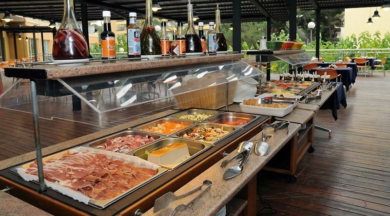 Svédasztalos félpanzió (reggeli 8:00-10:00, vacsora 18:30-21:30), spanyol és nemzetközi konyha. A részvételi díj nem tartalmazza a vacsoránál az italfogyasztást. Az ásványvíz, sör, bor, egyéb italok külön fizetendőek. Reggelinél a gyümölcslé, víz, kávé, tea térítésmentesen fogyasztható.
