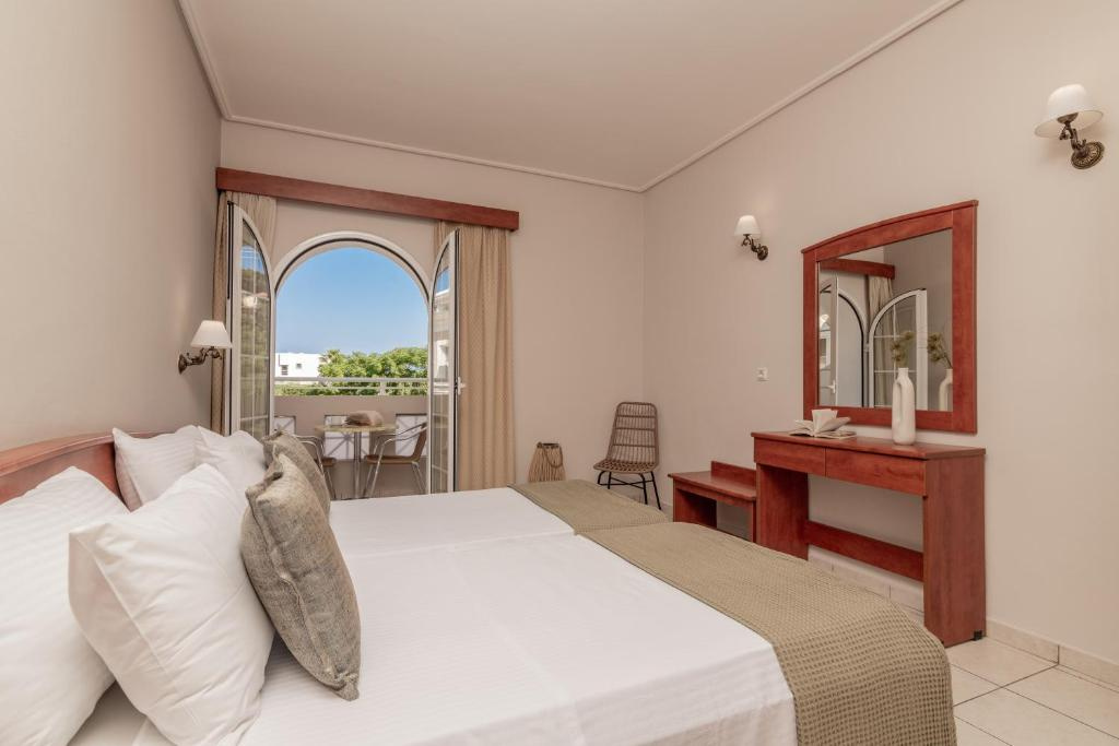 Fekvése: A település csendesebb részén elhelyezkedő 48 szobás, kétszintes épület, a tengerparttól való távolsága kb.350 m. A közelben (kb.100?600 m) kávézó, taverna, vendéglő, mini market található. Szolgáltatások: Recepció, társalgó, snack/pool bár, édesvizes felnőtt/gyerekmedence (ingyenes napágyak/napernyők), kis kert, mediterrán növényekkel, virágokkal, ingyenes WIFI (a recepciónál), babaágy (külön kérésre), parkolási lehetőség szolgálja a vendégek kényelmét. Felár ellenében ventillátor, széf, helyben kérhető/igénybe vehető. Ellátás: Önellátás (felár ellenében menüs vacsora kérhető, egy tavernában).