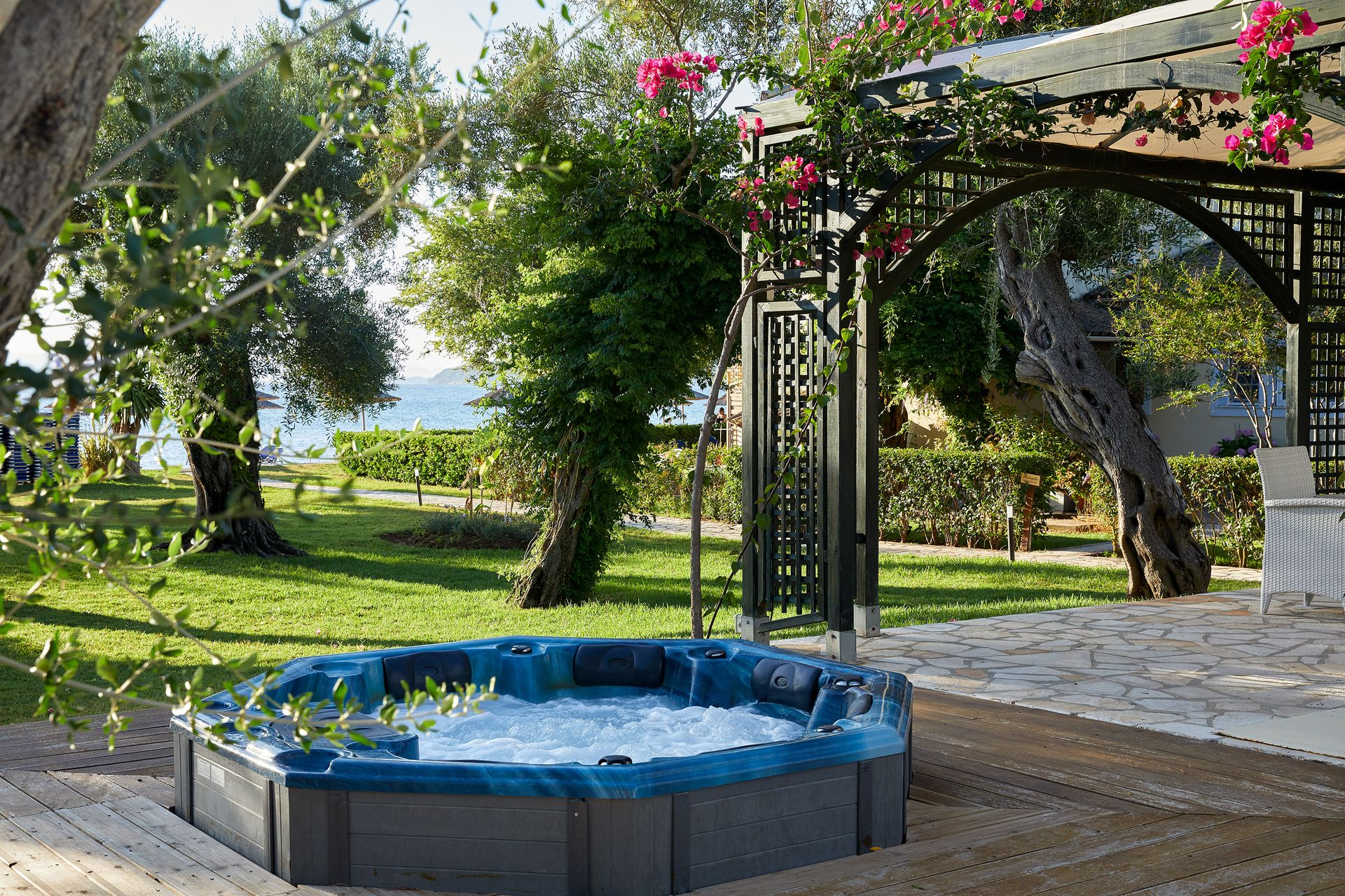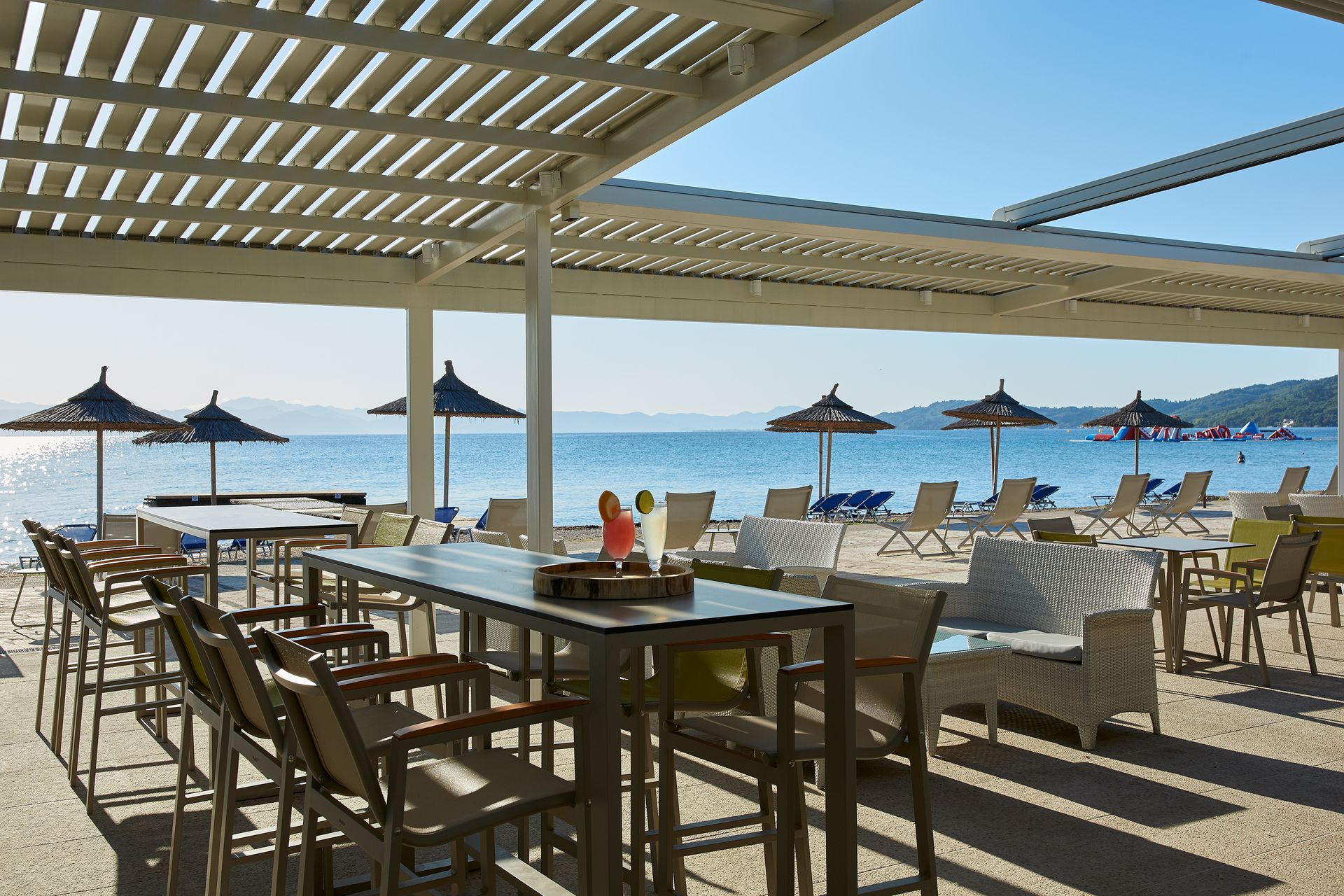 Moraitika elején, közvetlen a homokos, kavicsos tengerparton elhelyezkedő, négyszintes főépületből (liftes) és kétszintes melléképületekből álló 184 szobás szállodaegyüttes. A város központja néhány perces sétával gyalogosan is elérhető (kb. 400 méter), buszközlekedés a közelben található.