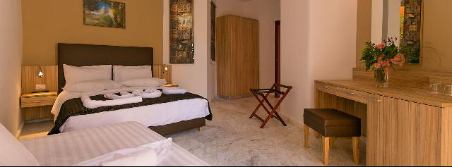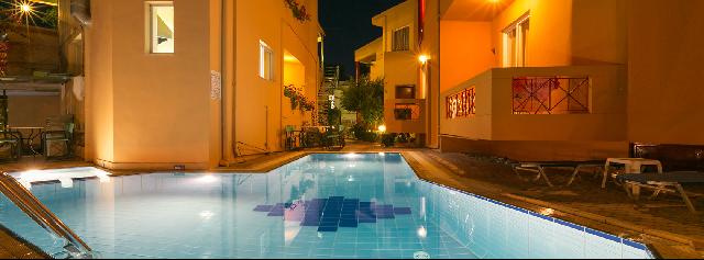 Fekvése: Ag. Apostoli csendesebb részén, csak kb. 4 km-re Chania központjától, a három kétszintes épületrészből álló, hagyományos krétai stílusban épült, igényesen felújított, 30 szobával rendelkező szálloda együttes. Strandolásra alkalmas tengerpart körülbelül 3-800 méterre található (négy kisebb homokos/kavicsos/köves öböl). Szolgáltatások: Recepció nagy méretű tévével, étterem, snack bár, kávézó, kis belső kert édesvizes medencével, körülötte ingyenes napágy/napernyő, ingyenes WIFI (a szobákban is), babaágy (előzetes kérésre), csomagszoba, parkolási lehetőség várja az utasokat. Felár ellenében széf, mosoda, helyben kérhető. Elhelyezés: Egyszerűen, de kényelmesen berendezett kétágyas, szobában, melyek felszereltségéhez légkondicionáló, sat-tévé, zenecsatorna, telefon, minihűtő, hajszárító, kisebb méretű zuhanyzós fürdőszoba, balkon/terasz, széf (térítés ellenében) tartozik. A szobák nem pótágyazhatók. Ellátás: Félpanzió (büfé reggeli és vacsora).Egyéb: