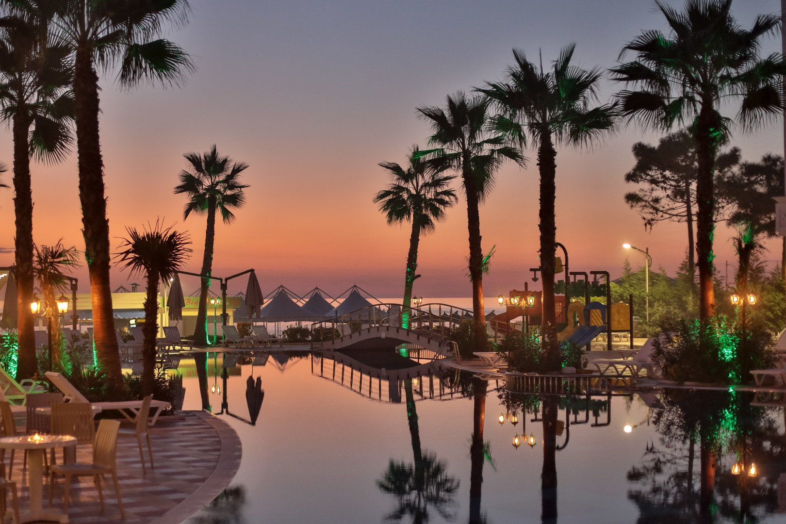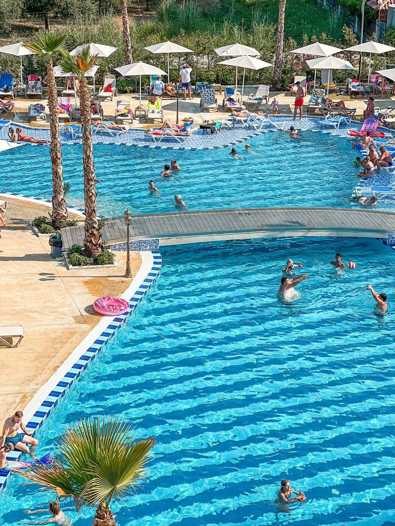 A szálloda saját medencével rendelkezik, amelyhez külön gyermekrész is tartozik. A medence mellett napernyők és napozóágyak biztosítják a vendégek kényelmét. A testvérszállodákban, a Grand Blue Fafa és az Aqua Blue hotelekben szintén használhatók a medencék és gyermekmedencék, ahol ingyenesen vehetők igénybe a napernyők és napozóágyak. A tengerparton strandröplabda és asztalitenisz áll rendelkezésre, a legkisebbeket pedig miniklub, játszótér és játszószoba várja.