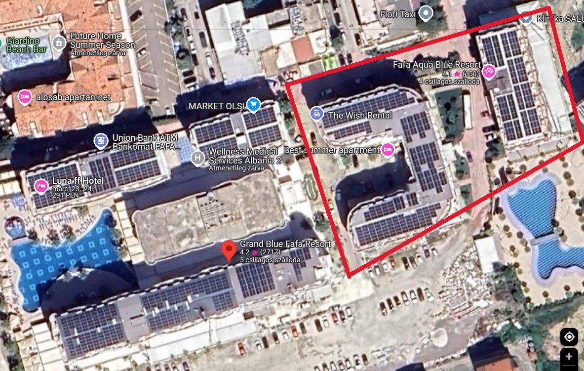 A szálloda Golem üdülőnegyedében, a testvérszálloda, a Grand Blue Fafa mögött helyezkedik el. A legközelebbi üzletek és bárok mindössze körülbelül 100 méterre találhatók. Durres központja mintegy 10 km-re, míg Tirana repülőtere körülbelül 40 km-re fekszik a szállodától.