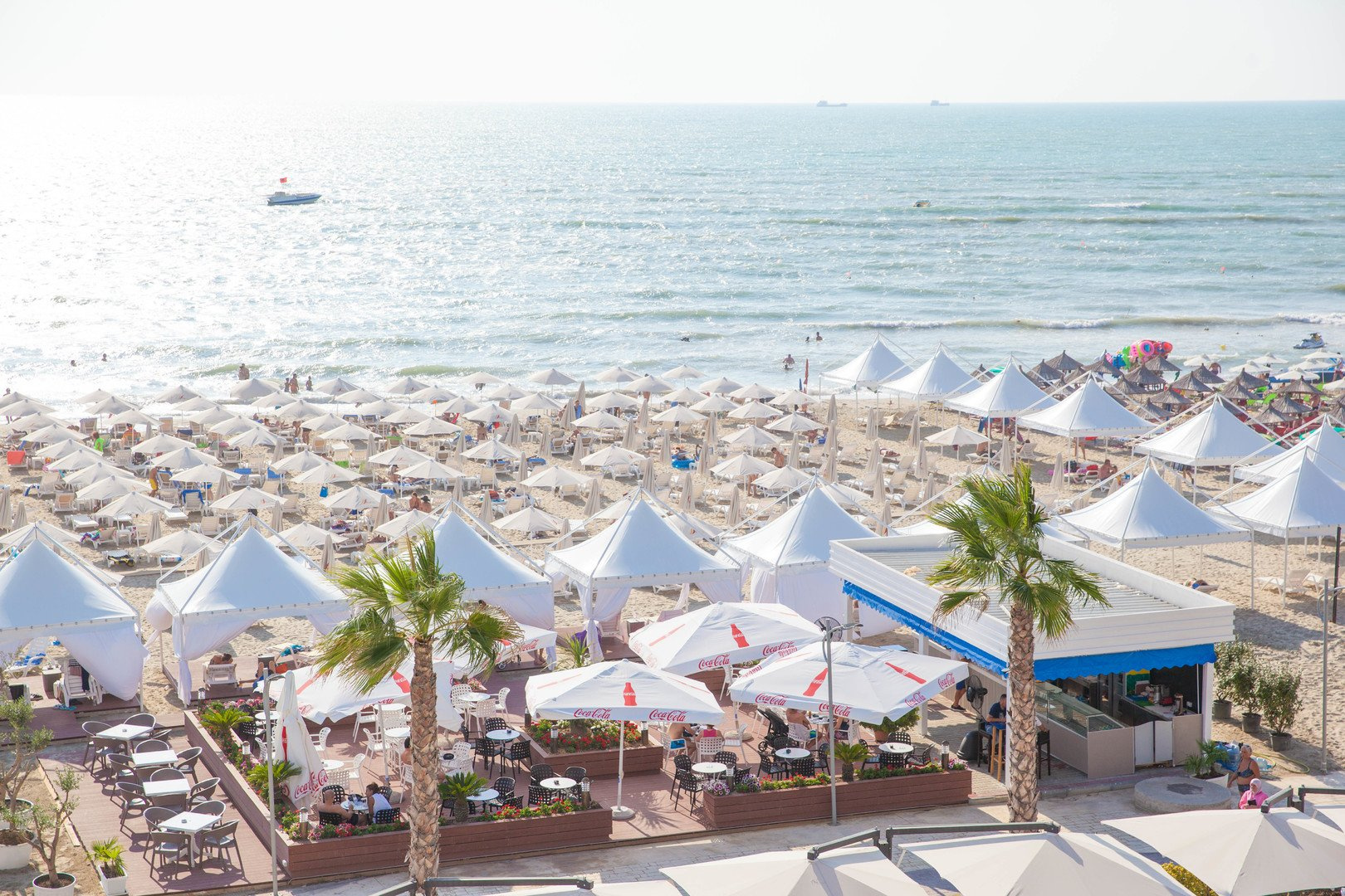Nyilvános strand, különálló szállodai résszel, homokos, kb. 200 m-re a szállodától, ingyenes napernyők, napozóágyak és matracok.