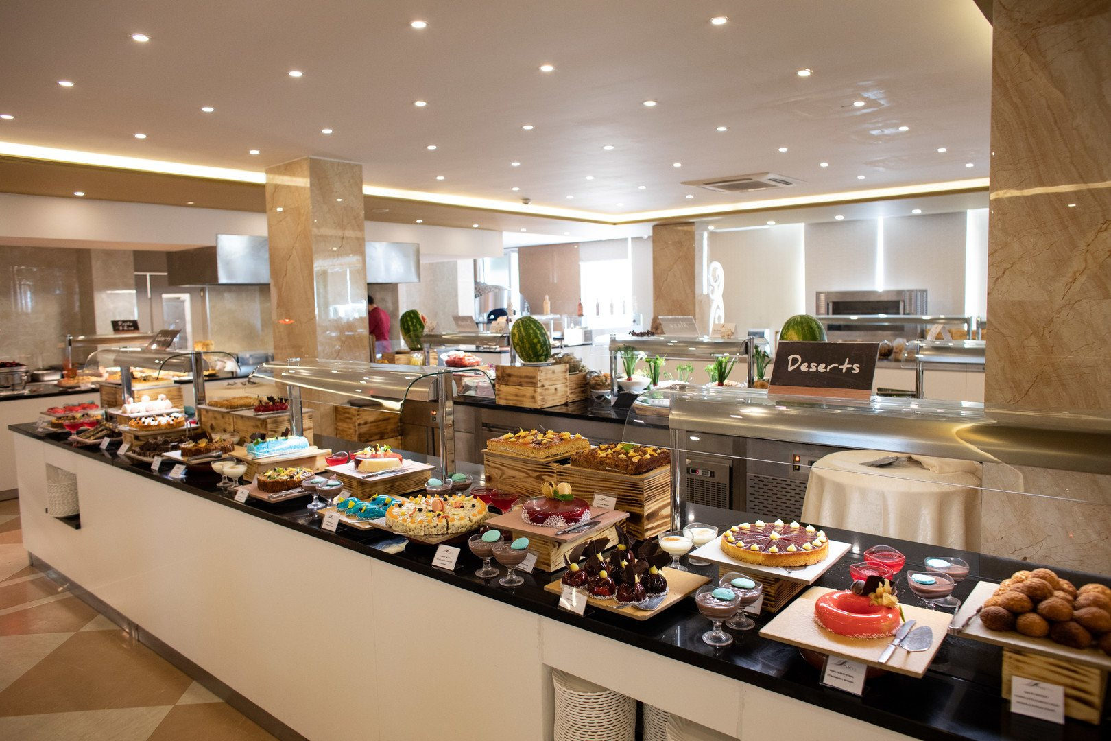 Az étterem büfé formájában kínál nemzetközi ételeket, ahol a gyermekek számára etetőszékek is elérhetők, valamint vegetáriánus ételek is rendelkezésre állnak. A vendégek kényelmét továbbá két bár szolgálja.