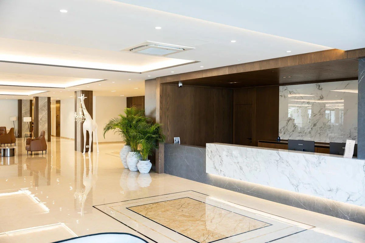 A testvér szállodák (Grand Blue Fafa, Fafa Aqua Blue) a szálloda előtt helyezkednek el, közös kerttel és medencékkel.