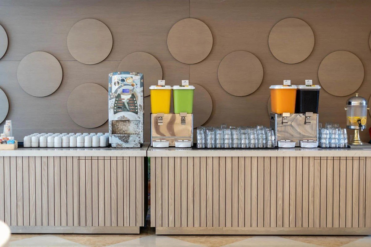 Étterem – büfé formájában kínált ételek, nemzetközi konyha. Az étteremben gyermekek számára is elérhetők etetőszékek. Vegetáriánus ételek is rendelkezésre állnak. 2 bár.