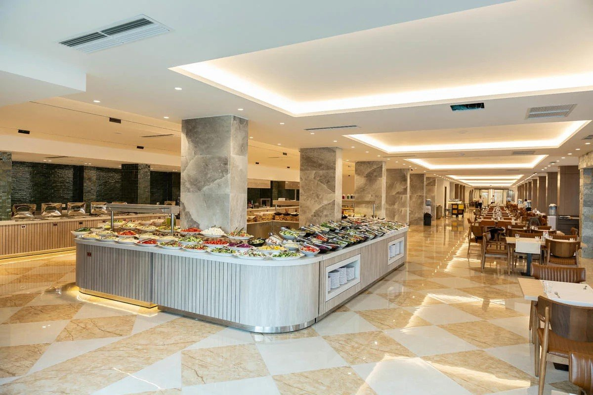 All inclusive: reggeli (7:30-10:00), ebéd (13:00-15:00), vacsora (19:00-21:00) büfé formájában a étteremben. Snackek az étteremben (16:30-17:30). Üdítőitalok és helyi alkoholtartalmú italok a kijelölt bárban (10:00-22:00). A palackozott víz térítés ellenében biztosított. Lehetőség az all inclusive bárok használatára a Grand Blue Fafa és Fafa Aqua Blue szállodákban. All inclusive karszalag viselése kötelező.