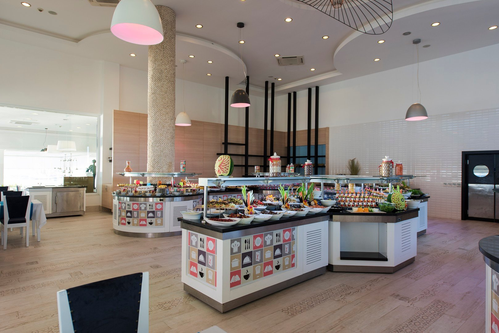 Az all inclusive tartalmazza a reggelit (7:30-10:00), a késői reggelit (10:00-11:00), az ebédet (12:30-14:30) és a vacsorát (19:00-21:30) svédasztalos formában, török palacsintát, fagylaltot, különféle snackeket egész nap, beleértve az éjféli snacket (00:00-06:00), helyi alkoholos és alkoholmentes italokat a szálloda által meghatározott időpontokban és helyeken.