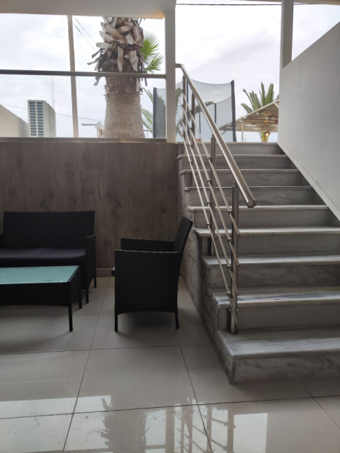 A homokos tengerparttól kb 450 m-re épült, felújított, háromszintes, két épületrészből álló, 60 szobás szállodaegyüttes. A közelben (kb. 200 m) tavernák, kávézók, üzletek, vendéglők találhatók. A közkedvelt szálloda 2019-ben hivatalosan is megkapta a 4. csillagot.