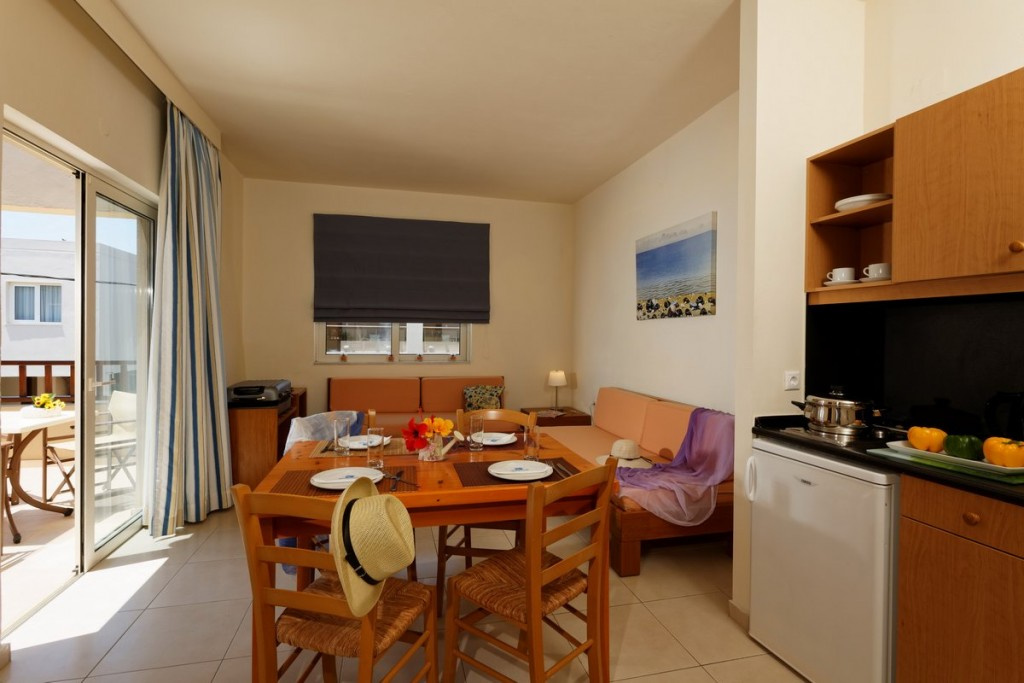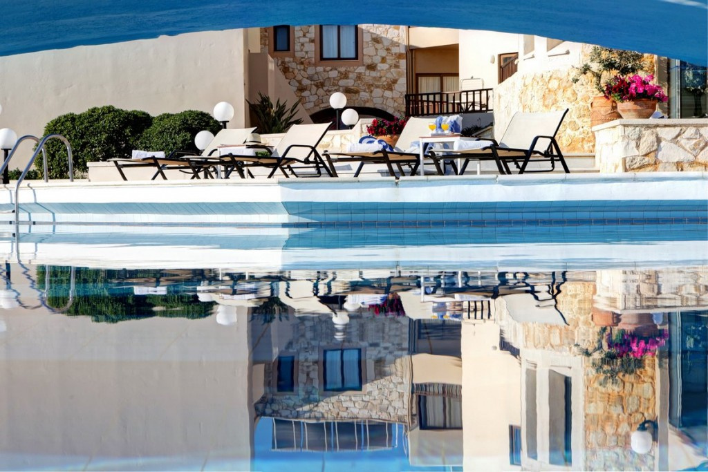 Kiváló elhelyezkedésű hotel közvetlenül Platanias arany homokos/köves tengerpartján. Platanias központi, nyüzsgő része kb. 450 méterre található. A hotel több épületből áll, a szobák elszórtan helyezkednek el az épületekben.