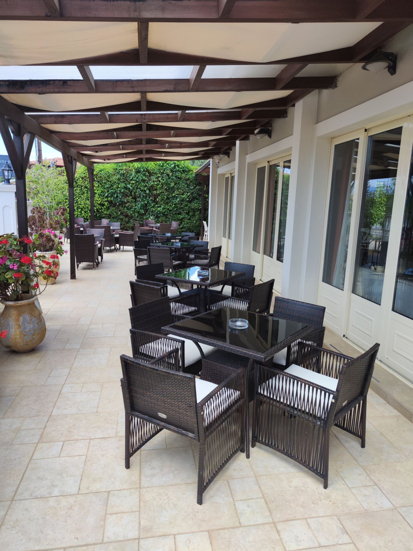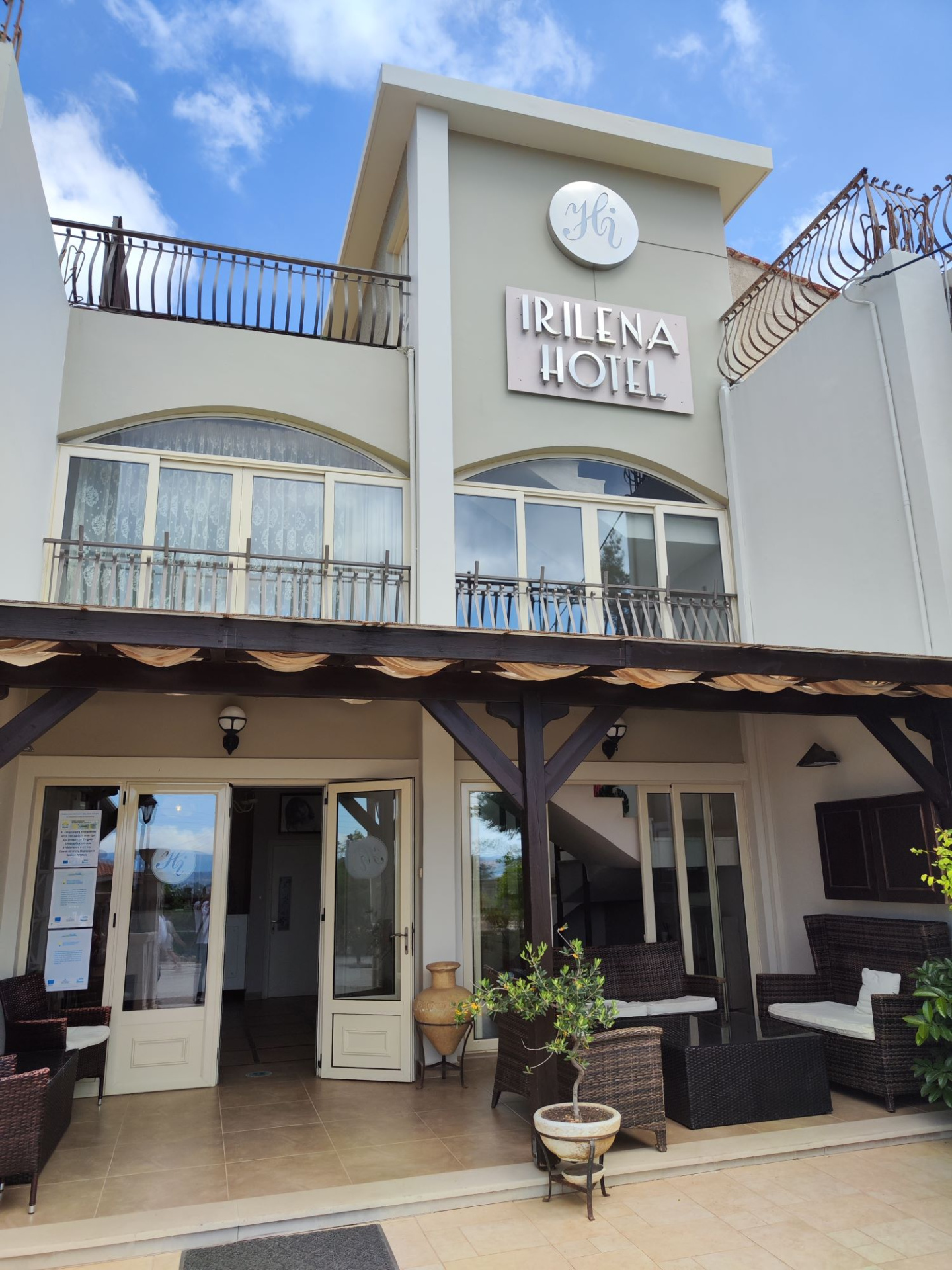 Közvetlenül Lassi település főútja mellet található, 25 szobás, családi üzemeltetésű, kétszintes épület, a homokos tengerparttól mintegy 450 m-re, a település központjától mindössze kb. 150 m-re. Szépen gondozott kertjében egzotikus növényekkel, fákkal, virágokkal találkozhatnak az utasok.