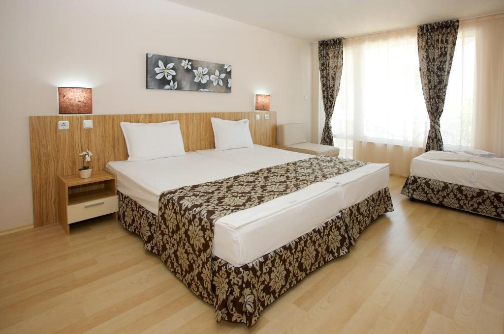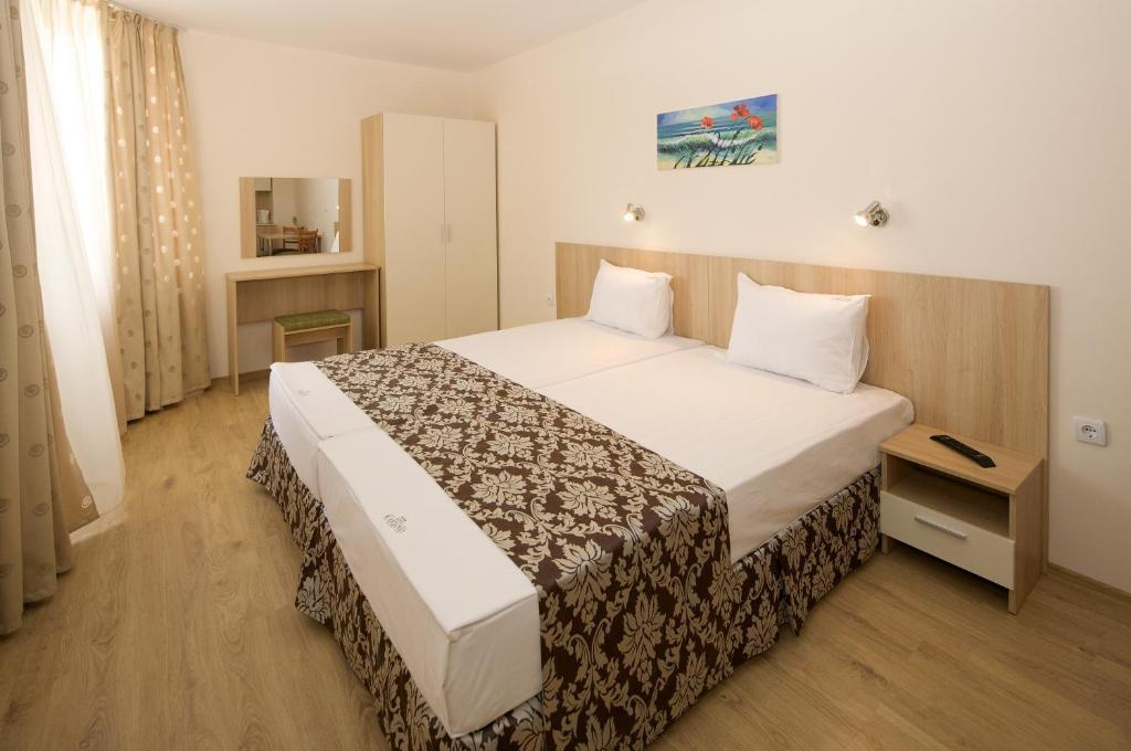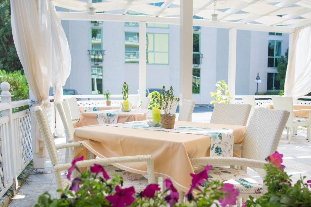 Reggelivel, félpanziós- (reggeli és vacsora italok nélkül), és teljes panziós (reggeli, ebéd és vacsora italok nélkül) ellátással foglalható. Egy étterem, lobbybár, és egy medencebár található a hotelben.