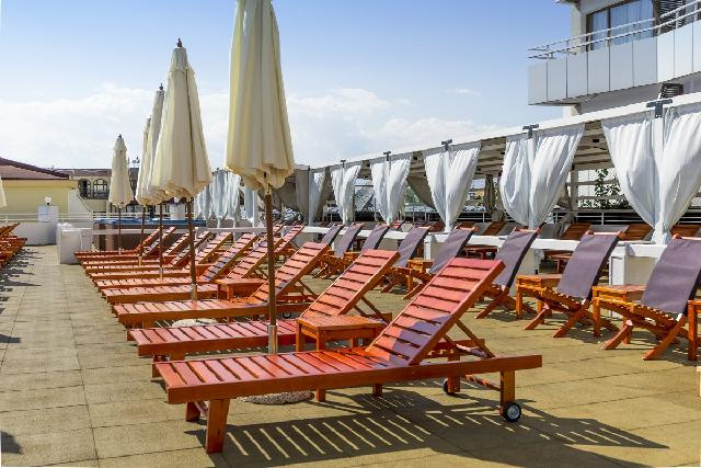 Fekvése: A 2 épületből álló, 20-emeletes 2015-ben felújított komplexum Napospart központjában terül el, a homokos tengerparttól mindössze kb. 200 méterre. Szolgáltatások: A szállodában recepció, főétterem, 5 bár (köztük lobby bár, medence bár és snack bár), a lobbyban ingyenes WIFI elérhetőség, 3 kültéri medence ingyenesen használható napernyőkkel és napozóágyakkal, aquapark, vízi torna, fitneszterem és animációs programok biztosítják a vendégek kellemes időtöltését és kényelmét. A gyermekek szórakozásáról elkerített gyermekmedence rész, csúszdák és animációs programok gondoskodnak. Térítés ellenében biliárd, darts, játékterem, internetsarok, törökfürdő, szauna, gőzfürdő, különféle masszázsok, mosoda, parkolás, a recepción bérelhető széfek, a strandon vízi sportok vehetők igénybe. Elhelyezés: 2 ágyas standard, pótágyazható szobákban, melyben a pótágy kihúzható fotelágy. A szobák légkondicionálóval, sat-tévével, telefonnal, mini hűtővel, hajszárítóval, ingyenes WIFI internetkapcsolattal, és erkéllyel felszereltek. A Junior lakosztályok kb. 40 nm alapterületűek, egy hálószobából és egy nappaliból (kinyitható kanapéággyal) állnak, melyeket ajtó választ el. Ellátás: All inclusive: reggeli, ebéd és vacsora büférendszerben, napközben szendvicsek (10:30-17:00 között), délután fagylalt és sütemények (15:00-17:00 között), helyi alkoholos és alkoholmentes italok fogyasztása (10:00 és 23:00 között).Egyéb: