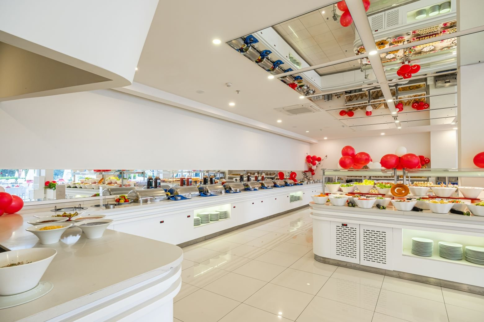 All inclusive: reggeli (07:00 h -10:00 h), késői reggeli (10:00 h-10:30 h), ebéd (12:30 h- 14:00 h), vacsora (19:00 h-21:00 h), esti ital (23:00 h-24:00 h) büfé a főétteremben; sütemények (10:00 h-18:00 h); fagylalt a kijelölt helyen (11:00 h-16:00 h); snackek a medence bárnál és a strand bárnál (11:00 h-16:00 h); üdítőitalok és helyi alkoholos italok a kijelölt bárokban (10.00 h-24.00 h); à la carte étterem (előzetes foglalással a tartózkodás alatt 1 alkalommal (min. 7 éj esetén). Gluténmentes étkezés - előzetesen jelezni kell!