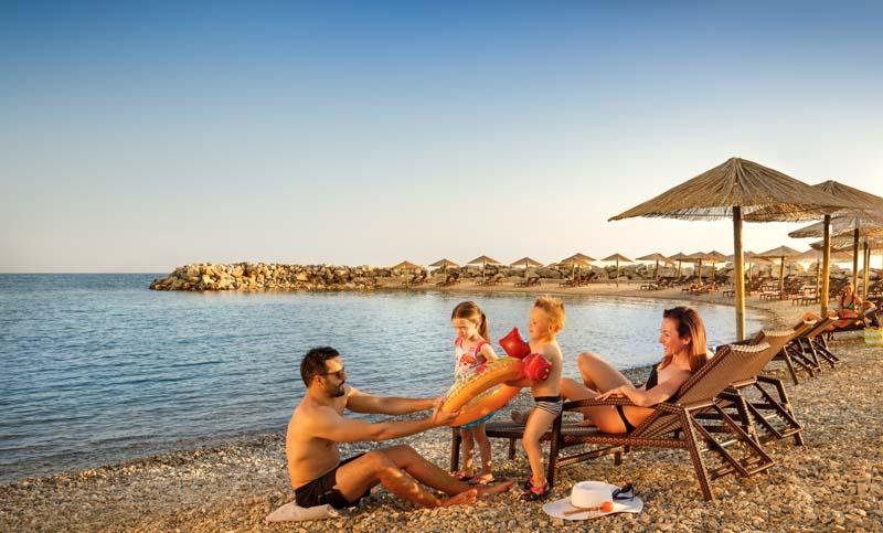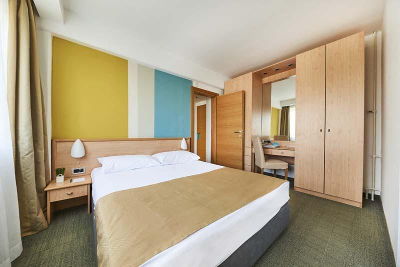 Suite 2+2: 2 ágyas hálószoba, nappali kihúzható kanapéággyal, tenger felőli erkély (max 2 felnőtt + két 10 éves gyermek részére).