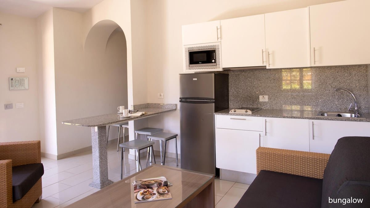 2 fős terasszal rendelkező bungalókban, melyekben lehetőség van pótágyazásra 2 felnőtt vagy 2 gyermek részére (kanapéágy). A szobák 46 m² területűek és tartozik hozzájuk egyénileg szabályozható légkondicionáló, fürdőszoba (kád vagy zuhanyzó, wc, hajszárító), nappali felszerelt konyhasarokkal és a hálószoba ajtóval elválasztva. Elérhető a szobákban vezeték nélküli internet, televízió, telefon és hűtőszerkény is.