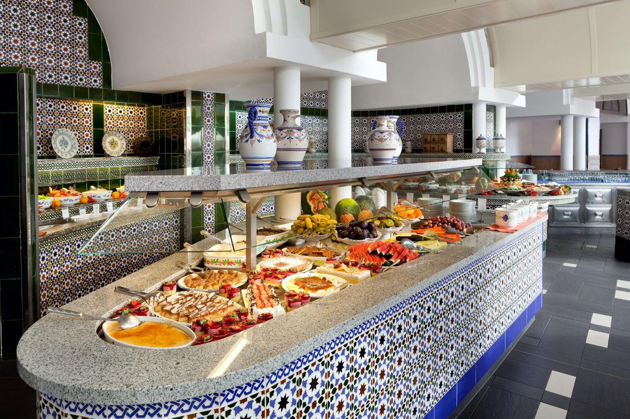 A Sandy Beach légkondicionált svédasztalos éttermének finomságai a gyönyörű kerti teraszon is elfogyaszthatók. A szállodában medence melletti snackbár és egy pékség is működik. A vendégeknek délutánonként kávét és süteményeket szolgálnak fel.