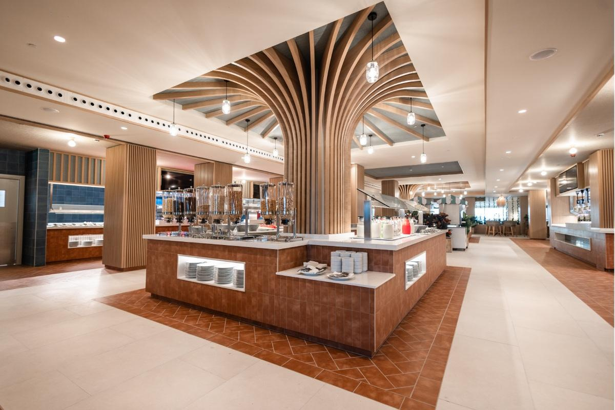 Étkezési szolgáltatásként a szálloda all-inclusive, félpanziós és csak reggelit kínál. A reggelit büfé formájában kínálják. Élvezze ebédjét a büféből vagy à la carte (kiegészítők kérésre). A vacsorát szintén büfé formájában szolgálják fel (kiegészítők kérésre). Az étkezésekhez teraszos büféétterem (mediterrán, kalóriaszegény, gluténmentes és vegetáriánus ételek), valamint egy 24 órás snackbár és a medencebár áll rendelkezésre. Vacsorához a vendégeknek megfelelő öltözéket kell viselniük az étteremben.