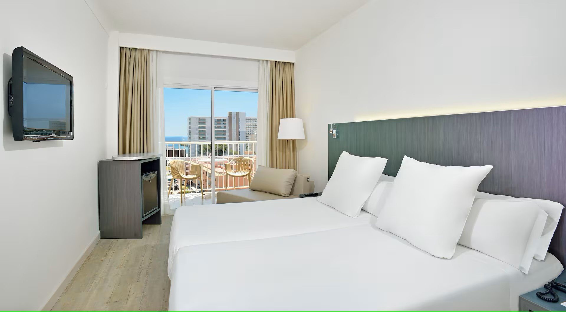 A szállodától kb. 250 méterre található Magaluf nyilvános strandja, amely homokos és fokozatosan mélyülő tengervízzel rendelkezik. A strand könnyen megközelíthető gyalogosan, járdán keresztül. A napernyők és napágyak bérelhetők, a költség körülbelül 17 EUR egy komplett szettre.