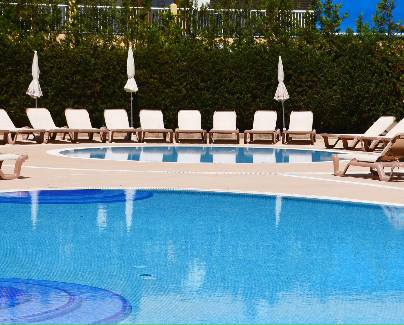 2 medence felnőtteknek, úszómedence, lagúna alakú medence, kb. 1000 m², nyitott illetve fedett medence, 2 gyermekmedence, napernyők és napozóágyak a medencék mellett ingyenesen állnak rendelkezésre, törölközők felár ellenében.
