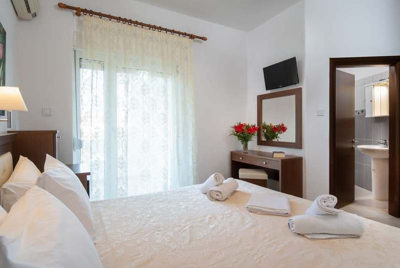 Fekvése: A családi vállalkozásban működő hotel Sarti Village-en található, csupán 100 m-re a homokos tengerparttól. Közelében étkezési és vásárlási lehetőség áll az utasok rendelkezésére. Szolgáltatások: Recepció, étterem, medence napágyakkal és napernyőkkel, medence bár, napozó terasz, kert, illetve privát parkolási lehetőség. Elhelyezés: 2 ágyas standard, pótágyazható, kertre néző vagy tengerre néző szobákban. A szobák felszereltségéhez egyénileg szabályozható légkondicionáló, SAT-tévé, fürdőszoba zuhanyzóval, minihűtő, ingyenes WIFI elérhetőség, valamint kerti bútorokkal berendezett balkon tartozik. Ellátás: ReggeliEgyéb: