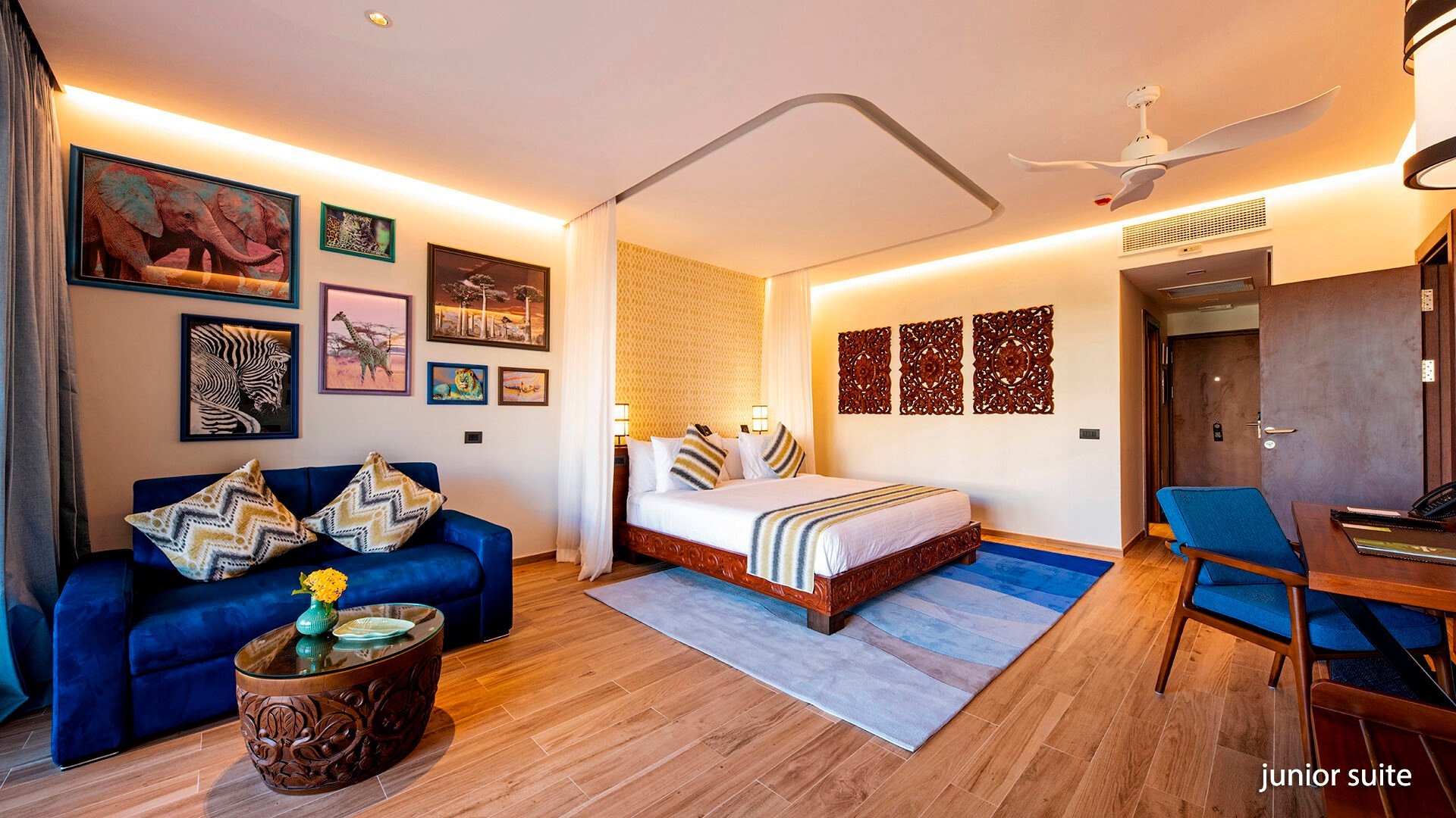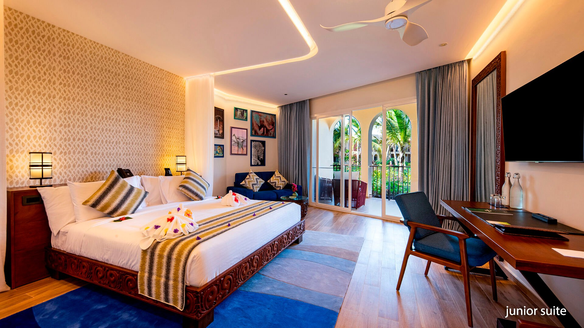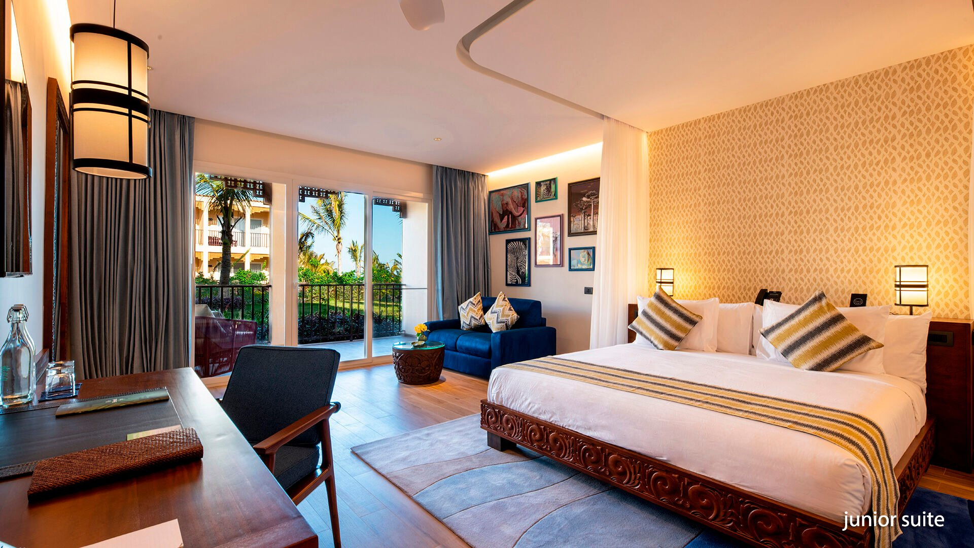 Kertre néző junior suite: a letisztult stílusú, harmonikus színekkel és elegáns bútorokkal berendezett, erkélyes, trópusi kertre néző kétágyas szobákban fürdőszoba, műholdas televízió, gardrob szekrény, egyénileg szabályozható légkondicionáló, írósztal és WIFI biztosítja a kényelmet. Tengerre néző junior suite: a letisztult stílusú, harmonikus színekkel és elegáns bútorokkal berendezett, erkélyes, az Indiai-óceánra néző kétágyas szobákban fürdőszoba, műholdas televízió, gardrob szekrény, egyénileg szabályozható légkondicionáló, írósztal és WIFI biztosítja a kényelmet.