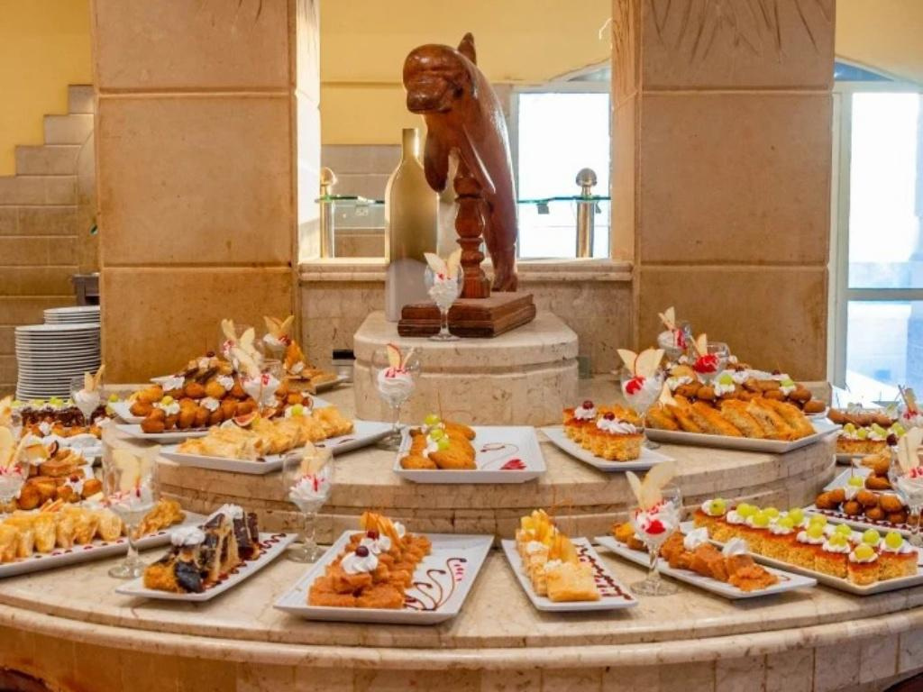 ÉTKEZÉS: all inclusive • reggeli, ebéd és vacsora büfé • snackek • kávé, tea és desszertek • helyi alkoholos és alkoholmentes italok • térítés ellenében: import és prémium alkoholos és alkoholmentes italok • palackozott italok • friss gyümölcslevek • vízipipa • szobaszerviz
