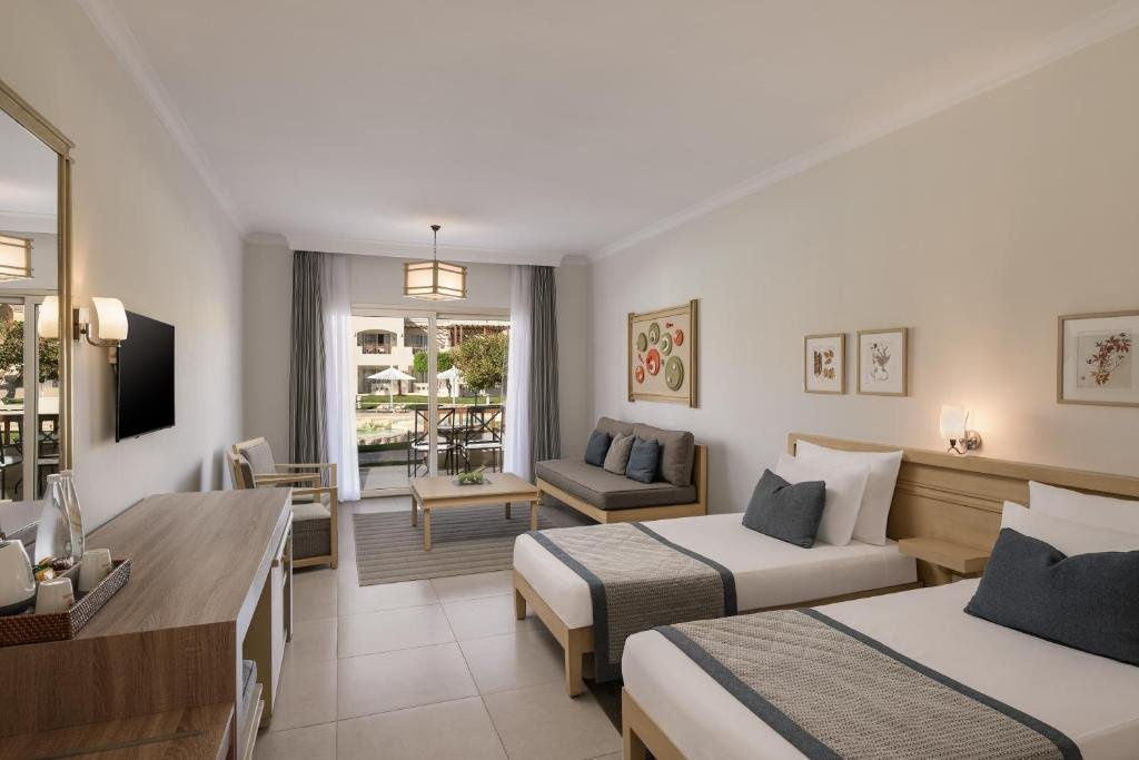 Minden szobához erkély vagy terasz tartozik, ahonnan lenyűgöző kilátás nyílik a tájra és az úszómedencékre. Egyedi hőmérséklet-szabályozás, műholdas TV és széf minden kategóriában rendelkezésre áll. Minden szobában tea- és kávéfőző, valamint minibár is található. Tágas fürdőszobákban hajszárító található.