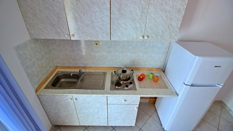 AM3-5 ágyas emeleti 38 nm /1 db 2.emeleti (háromágyas hálószoba, nappali duplaággyal és konyhasarokkal, klima, TV, fürdőszoba, tenger felőli erkély).