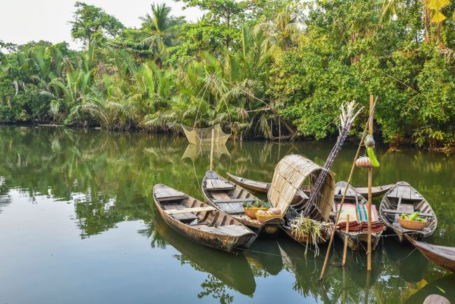 Biciklizünk az elárasztott rizsföldek közötti úton a "kókuszfaluba", Cam Thanhba (kb. egy óra), majd átszállunk egy hajóra ami Cua Dai tengeri kikötőbe visz. Itt kipróbálhatjuk a halászatot, majd egy bambuszkosár csónakban lebegünk át a mangrove erdőn. Egy helyi családnál ebédelünk, helyben termelt és frissen halászott finomságokat.