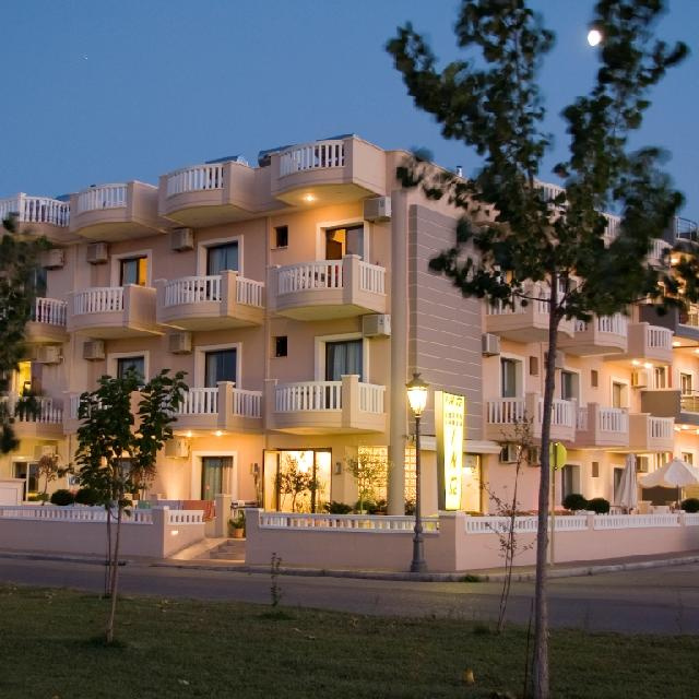 A neoklasszikus stílusú épület az Andromeda Apartmanházzal egy utcában, Paralia új részén, a homokos tengerparttól kb. 250 méterre található. A természetes környezet, a színek harmóniája, illetve a hagyomány és a modern elemek kombinációja megfelel minden elvásárnak, így ideális körülményeket biztosít a vendégek kellemes nyaralásához.