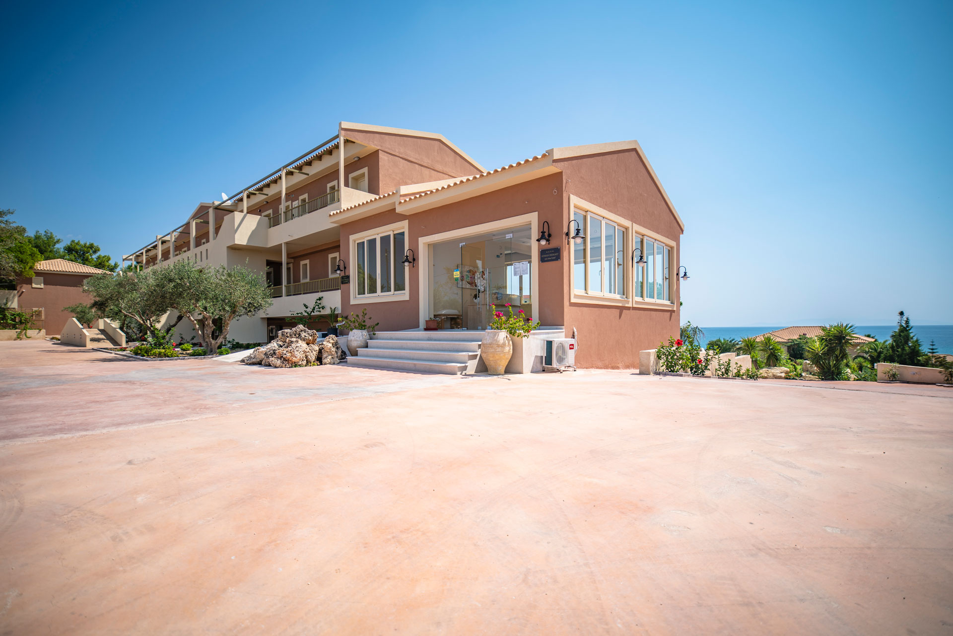 A 4 csillagos, kb. 40 hektáron elterülő, főépületből és több bungallóból álló Ionian Sea Hotel a nyugodt és rendkívül zöld Kounopetra régióban helyezkedik el, 7 km-re Lixouri festői városától. A homokos tengerpart kb. 160 méterre található a recepciótól, fokozottan mélyűlő tengerparti résszel. A repülőtér kb. 50 km-re található. A csúszdás, igényes környeztben található közkedvelt Ionian Sea Hotel tökéletes választás családoknak valamint baráti társaságoknak is egyaránt. Buszmegálló a hotel közelében található, Lixouri város központja felé.