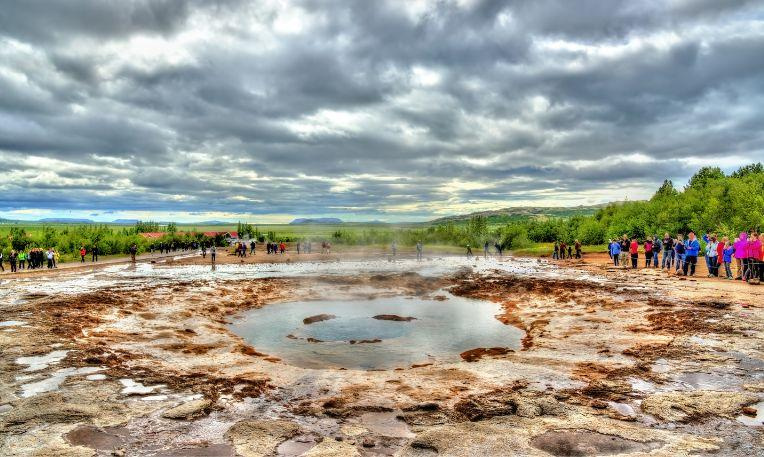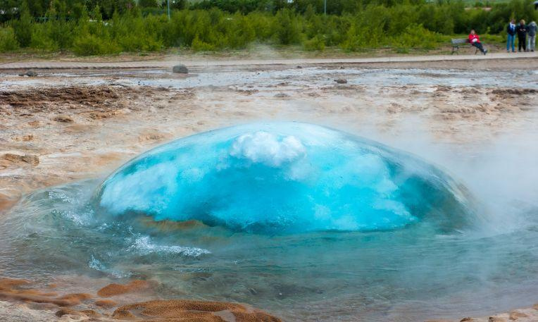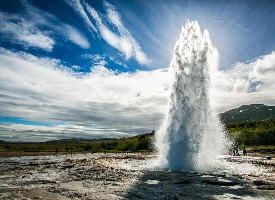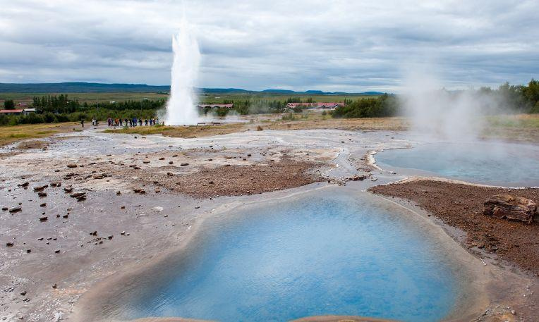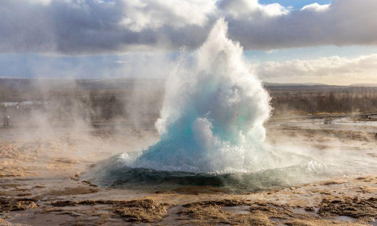 Innen továbbindulunk a Geysir geotermikus területre, ahol az Európa egyetlen működő gejzírje, a Strokkur minden 8-10 percben a magasba lövelli forró vízsugarait. A forró források és kénes gőzfelhők látványa lenyűgöző bepillantást nyújt a Föld felszíne alatt zajló erőkbe.