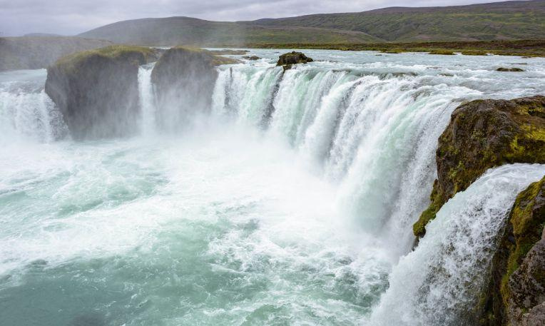 Kalandunk folytatódik kelet felé, és a napot a természeti csodák felfedezésének szenteljük. Utunk első megállója a lenyűgöző Goðafoss vízesés, amely nemcsak a természet erejét, hanem Izland történelmét is megidézi, mert 1000-ben itt tértek át a pogányságról a kereszténységre a helybéliek. A 175 kilométer hosszú Skjálfandafljót gleccserfolyam vize 12 méteres magasságból zúdul itt alá körülbelül 30 méteres szélességben.