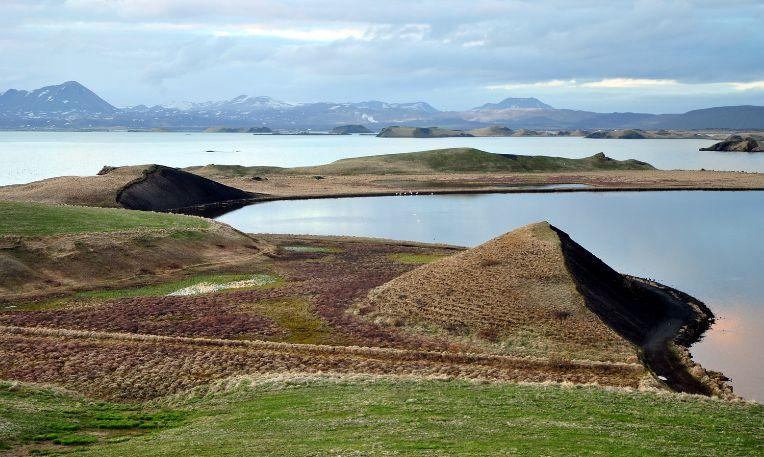 A Mývatn-tó Izland északi részének egyik legkülönlegesebb természeti látnivalója, amely változatos vulkanikus tájaival és gazdag madárvilágával minden látogatót lenyűgöz. A tó környékét vulkáni kráterek, lávamezők és geotermikus források szegélyezik, amelyek szinte földöntúli hangulatot kölcsönöznek a vidéknek. Különösen látványos a közeli Hverir geotermikus terület, ahol a forró iszapfortyogók, gőzoszlopok és kénes szagok között sétálva úgy érezhetjük, mintha egy másik bolygóra kerültünk volna. A sárgás, narancsos és szürkés színekben játszó talaj a föld mélyéből feltörő energiát tükrözi, miközben a háttérben a Námafjall-hegy impozáns tömbje magasodik.