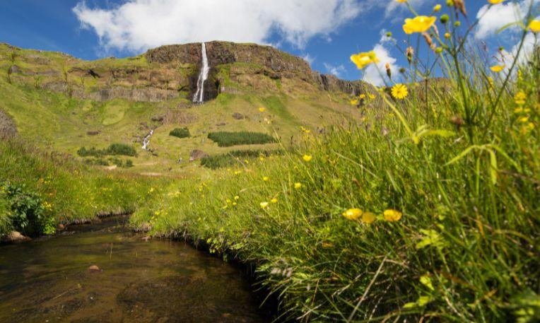 Megérkezünk Glaumbærba, ahol egy autentikus néprajzi múzeumban betekintést nyerhetünk Izland múltjába. A múzeum egy gyönyörűen megőrzött, hagyományos izlandi tanya, amely bepillantást enged abba, hogyan éltek az izlandiak a 18–19. században. A fűvel borított tetős házak szinte beleolvadnak a tájba, belül pedig eredeti bútorok, használati tárgyak és mindennapi eszközök mesélnek a vidéki élet egyszerűségéről és találékonyságáról.