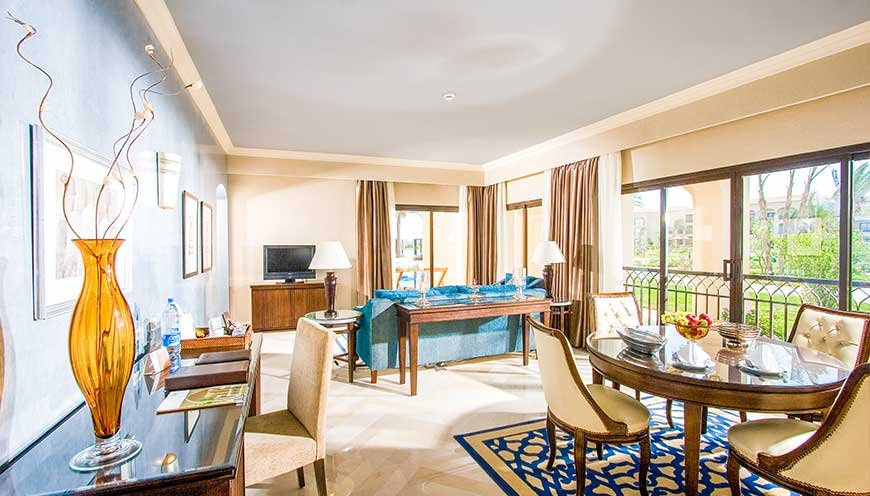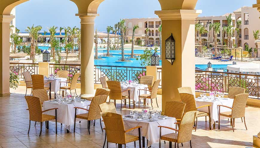 ALL INCLUSIVE: Reggeli, ebéd és vacsora svédasztalos formában, alkalmanként különféle tematikus estek, napközben snackek, fagylalt és tengerparti kioszk, kávé és péksütemények a La Perla Pool bárban, különféle helyi alkoholos és alkoholmentes italok 10 órától éjfélig (importált italok térítés ellenében) az éppen nyitvatartó bárokban. A diszkóban 22 órától éjfélig ingyenes az all inclusive keretein belülb az italfogyasztás, éjféltől hajnali 2 óráig felár ellenében. Minden nap egy üveg víz bekészítve a szobában. Heti 2x (min. 7 napos tartózkodás esetén) a szabad helyek függvényében vacsora a 4 à la carte étterem egyikében olasz (Nino's), ázsiai (Makai Tukai), halétterem (Corallo), közel-keleti étterem (Sofra), előzetes foglalás szükséges legalább 48 órával előbb (bizonyos fogások az étlapról felár ellenében). Az all inclusive nem tartalmazza: import alkoholos italok, minibár és vízipipa (19:00-12:00 között a shisha sarokban), gyógyfürdő és szépségszalon. Vacsorára megfelelő öltözet, hosszú nadrág kötelező.