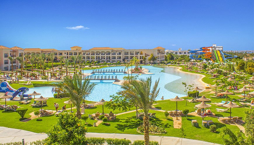 A szálloda közvetlenül Hurghada hosszú, lassan mélyülő, homokos/kavicsos strandján található (fürdőcípő viselése javasolt, mert a korallok kinyúlhatnak akár a partig). Körülbelül 20 km-re található Hurghada központjától (buszos transzfer felár ellenében), a repülőtér pedig körülbelül 17 km-re található. A JAZ szállodalánc luxusszállodája tágas előcsarnokkal és recepcióval, bankautomatával, 6 bárral, 2 fő étteremmel (a 2. fő étterem, a Four Corners részlegesen zárva lehet, a szálloda foglaltságától függően) és 4 à la carte étteremmel várja vendégeit (előzetes bejelentkezés szükséges, bizonyosesetkben felár ellenében). Gyógyszertár a házban, fodrászat és wellness részleg. A hatalmas kertben 17 medence (részben szezonálisan fűtött), külön gyermekmedencékkel, medence/strand bár és jacuzzi található. A három, felváltva nyitva tartó aquapark összesen 17 csúszdával, köztük 4 gyerekcsúszdával kínál vízi szórakozást kicsiknek és nagyoknak (bizonyos csúszdák csak min. 1,20 m magasságtól, vagy 10 éves kortól használható, illetve max. 120 kg-ig). A napernyők és strandtörölközők a medencénél és a strandon ingyenesen állnak rendelkezésre. A strandon találhatóak az új strandkioszkok pizzával, fánkkal, szendvicsekkel, virslivel és különféle gyümölcslevekkel.WLAN a szobákban és a közöségi terekben ingyenes (korlátozott sebesség, szobánként 2 eszköz), gyorsabb sebességű net felár ellenében elérhető.
